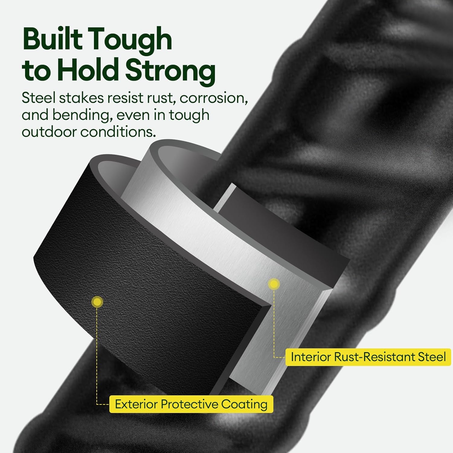 - Easy to Hammer into Ground: Drive into tough soil—clay, gravel, or rocky terrain—with ease; Sharp chisel-point ends let you push or hammer stakes in smoothly, no bending, no hassle