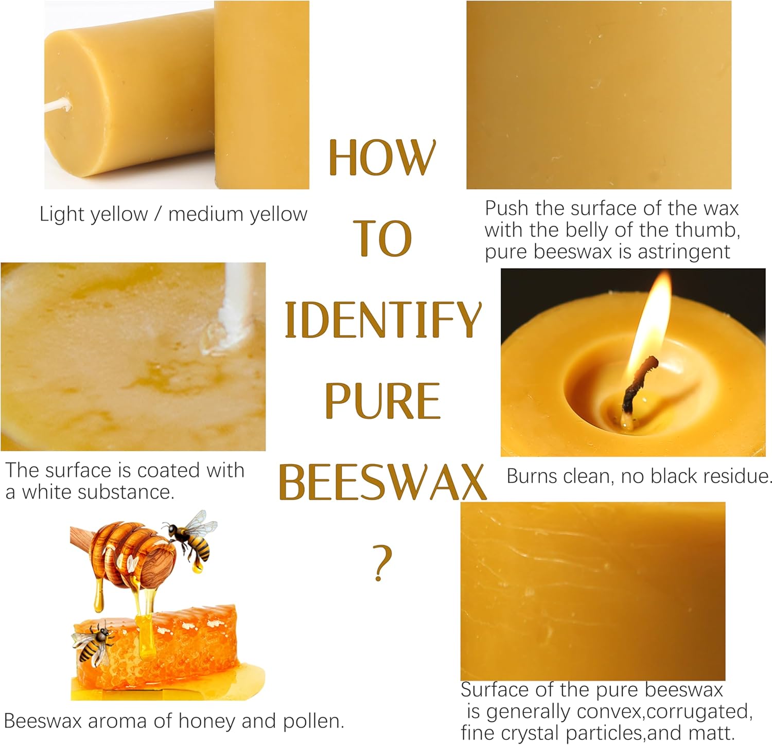- 🐝🎁【A GREAT GIFT AND SPECIAL OCCASIONS】The natural beauty of beeswax pillar candles is further enhanced by their elegant appearance. The smooth surface and golden hue of the pillarcandle give them a classic, timeless quality that makes them suitable for a variety of settings, from rustic to modern interiors.The pure beeswax pillar can be placed in a decorative holder or used to create a centerpiece that will captivate guests and add a touch of sophistication to any event. Whether you're looking for a housewarming present, a holiday gift, or a way to celebrate a special occasion, these candles are sure to leave a lasting impression on the recipient.