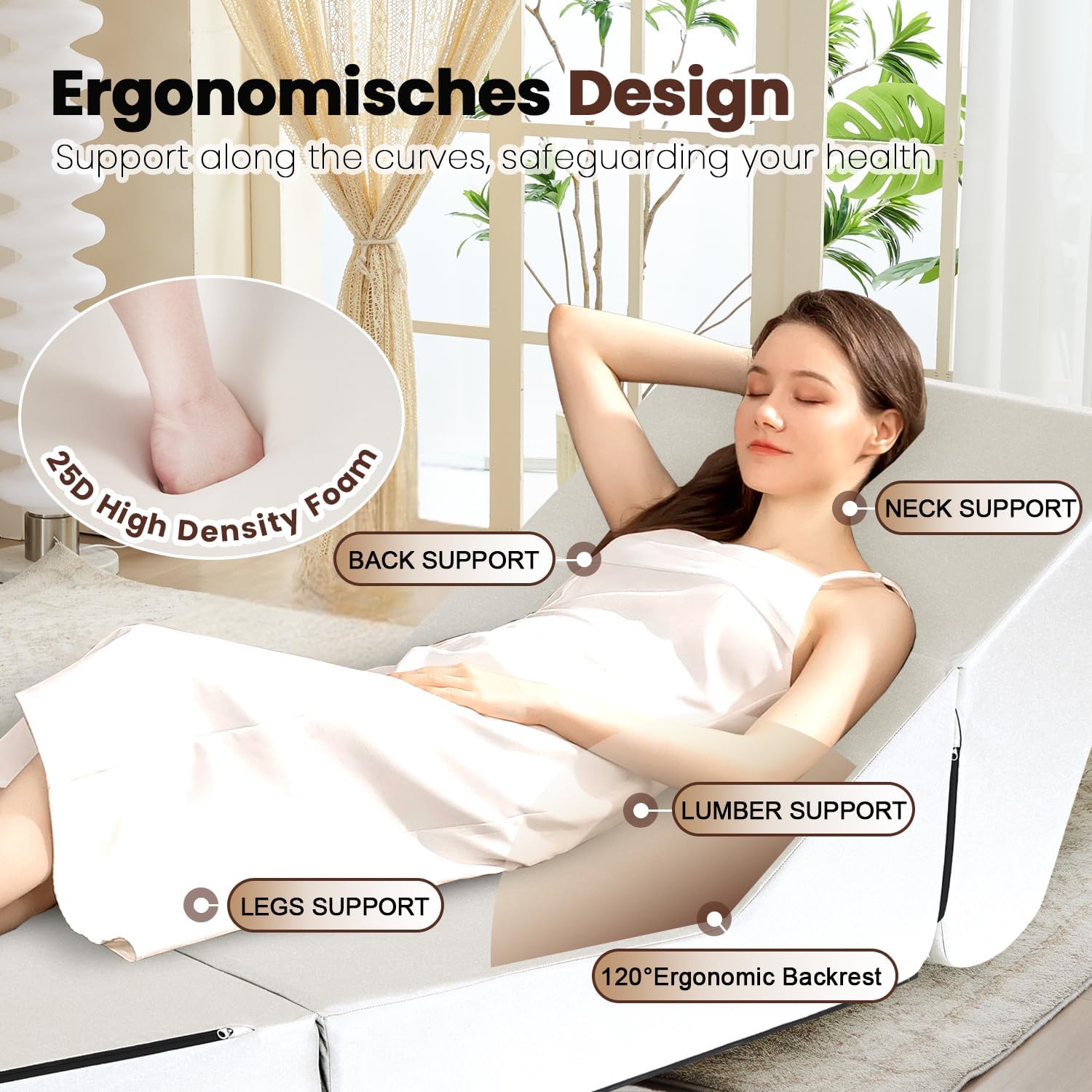 - 120-Degree Ergonomic Reclining Backrest:The 120° ergonomic backrest of our patio furniture perfectly fits the natural curve of your spine when seated, evenly distributing pressure on your lower back and hips. Whether you're working at home, chatting around a campfire, or reading in the garden, it offers firm support, preventing back pain from long - term sitting. The floor sofa scientifically designed angle relaxes your muscles, reduces strain, and ensures comfort even after extended use. It's ideal for both indoor and outdoor relaxation.