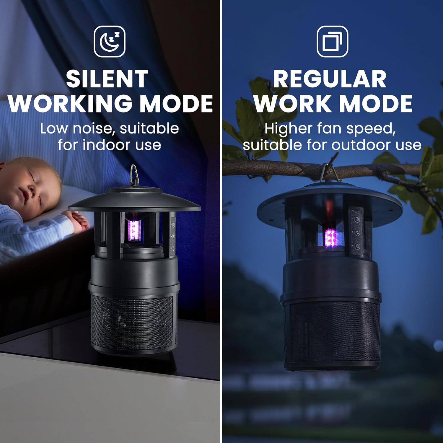 - 3 Working Modes – 8/12H timer prevents overuse, sleep mode reduces fan speed to reduce noise, mosquito zapper outdoor is built-in light provides ambient illumination for patios or porches while trapping bugs.