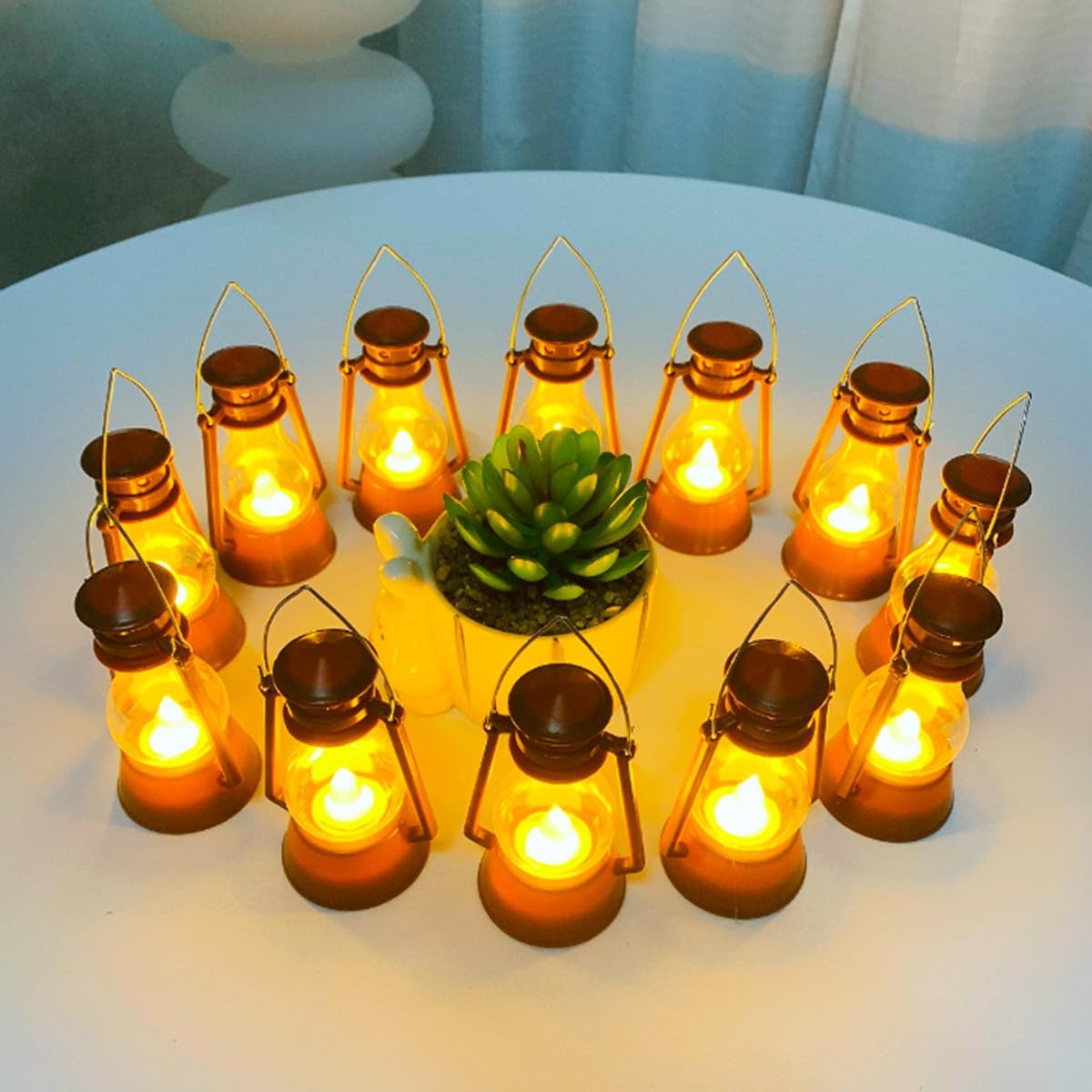 12 Pack Mini Lantern for Little Cowboy Centerpieces Tables Ideas Western Party Favor Decorations Wedding Decor Camping with 4inch Flickering LED Candle, Vintage Table Toppers Decorative (Brown)