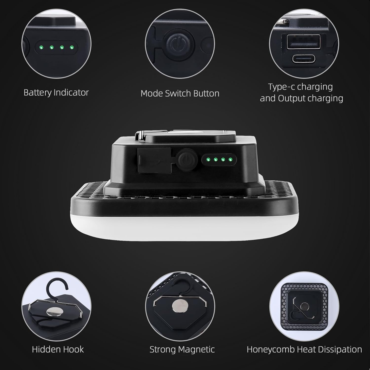 - 【High lumen & Easy to use】4000LM outdoor hanging tent lights can illuminate an area of 200 square meters. equipped with a hook and magnet at the bottom. can be hung high to get the best light source or magnetically attached to any place with iron.