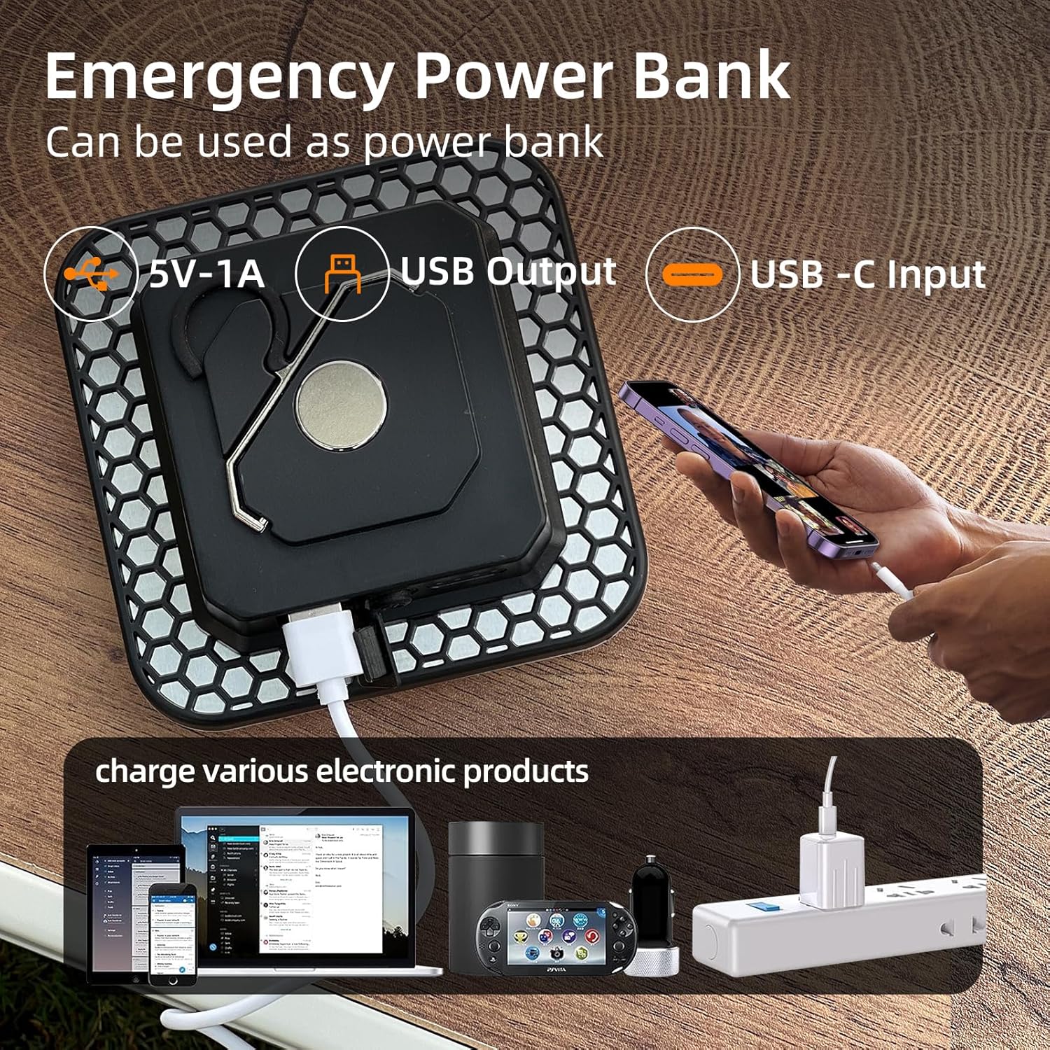 - 【IPX5 Waterproof】IPX5 waterproof enables this outdoor camping light to work normally even in sudden downpours or humid environments. It is a reliable companion for camping, hiking, and even during hurricanes.