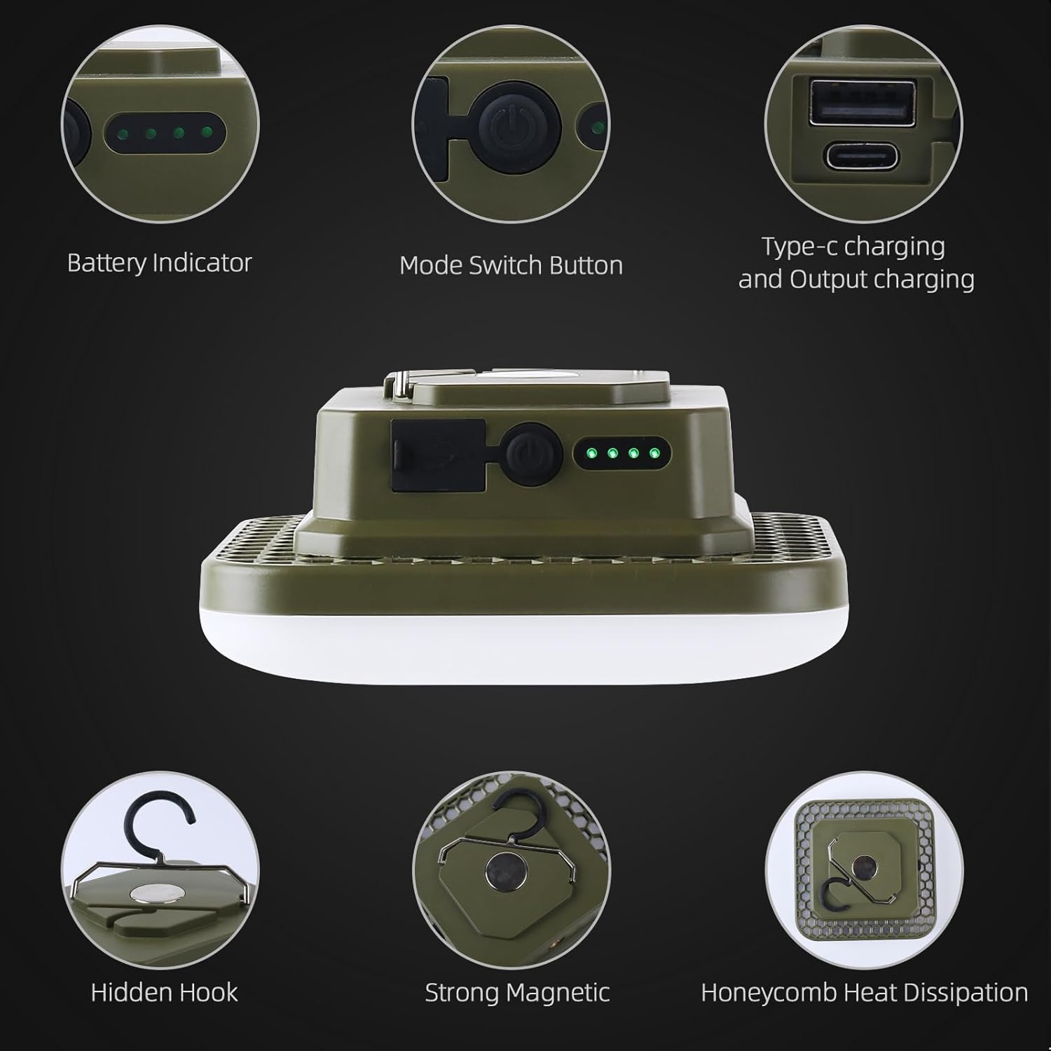 - 【High lumen & Easy to use】4000LM outdoor hanging tent lights can illuminate an area of 200 square meters. equipped with a hook and magnet at the bottom. can be hung high to get the best light source or magnetically attached to any place with iron.