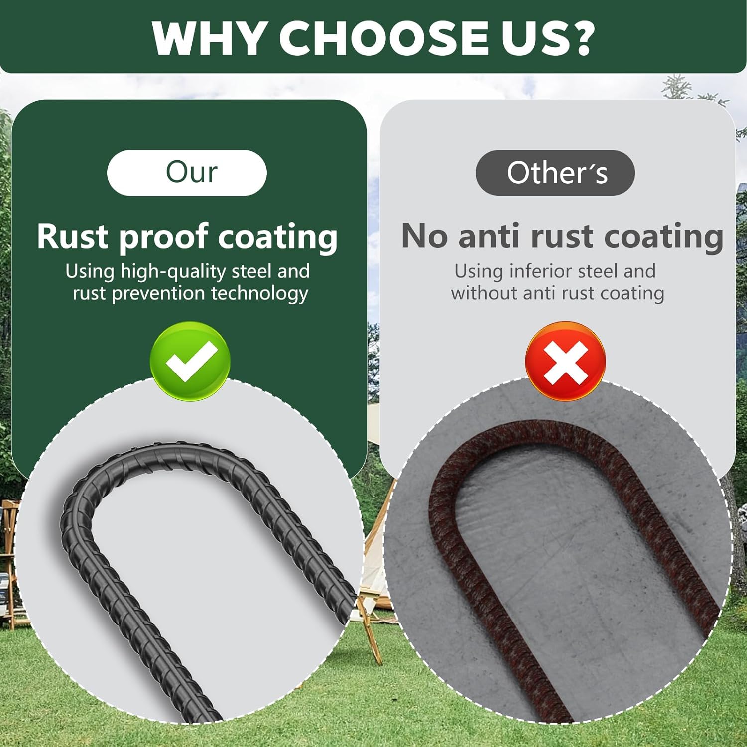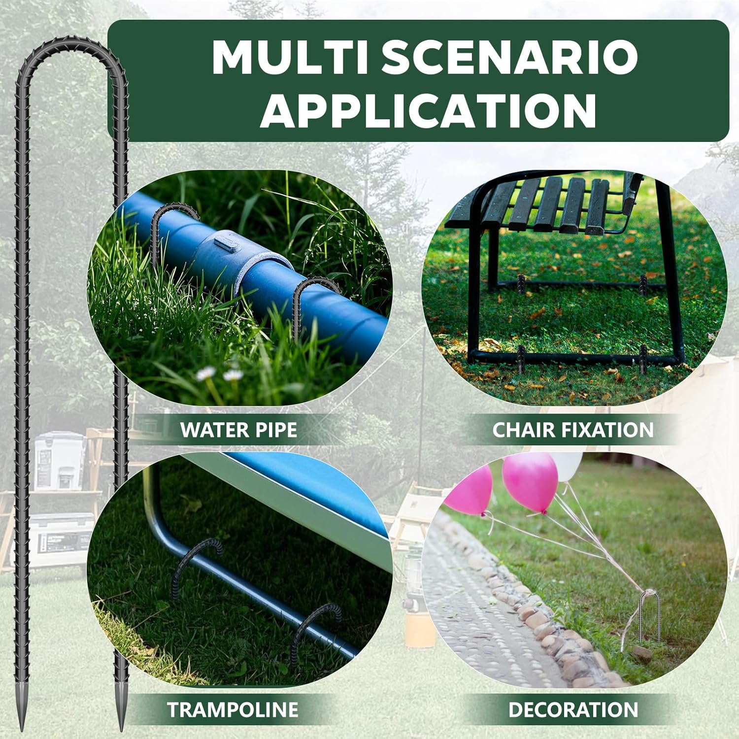 - Wide Applications:Versatile and reliable, our lawn stakes are perfect for a variety of outdoor projects. Whether you're securing tents, tarps, or landscape fabric, trust in their reliability and versatility for all your anchoring needs