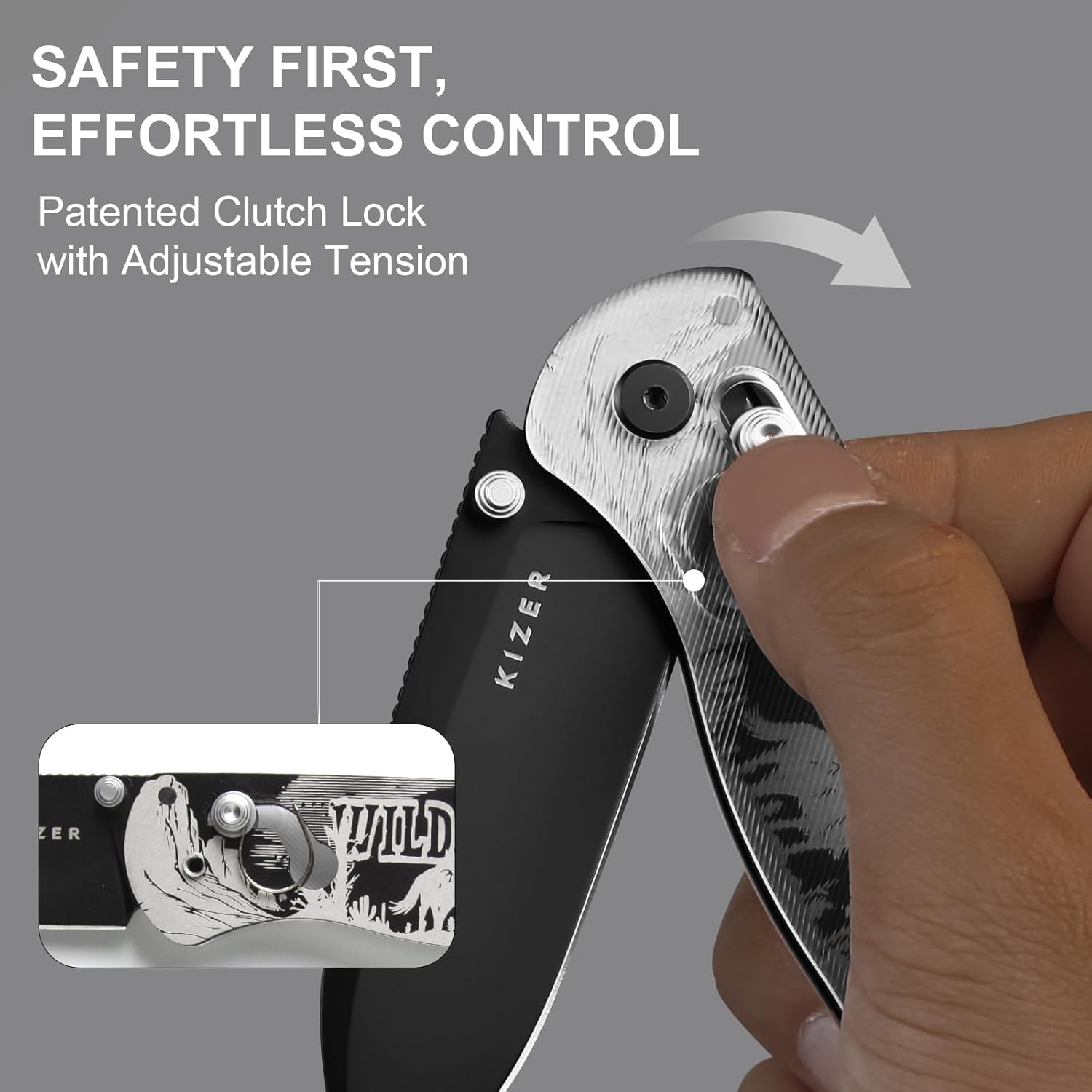 - Iconic Drop Bear Legacy, Trusted by Fans: As part of Kizer’s most successful series, Drop Bear edc knife inherits ergonomic lines and proven reliability. Loved by EDC enthusiasts for innovative clutch lock of Drop Bear folding knife and premium build quality.