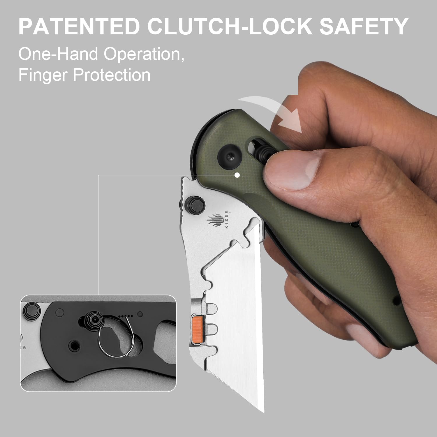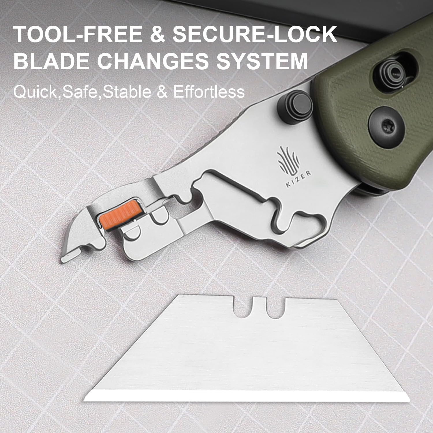 Kizer Uti Bear(Tool-Free Version) Folding Utility Knife, Quick Change Box Cutter EDC knife with 5PCS Razor Blades, Clutch Lock & Pocket Clip Small Pocket Knives for Men Women V3619JA6