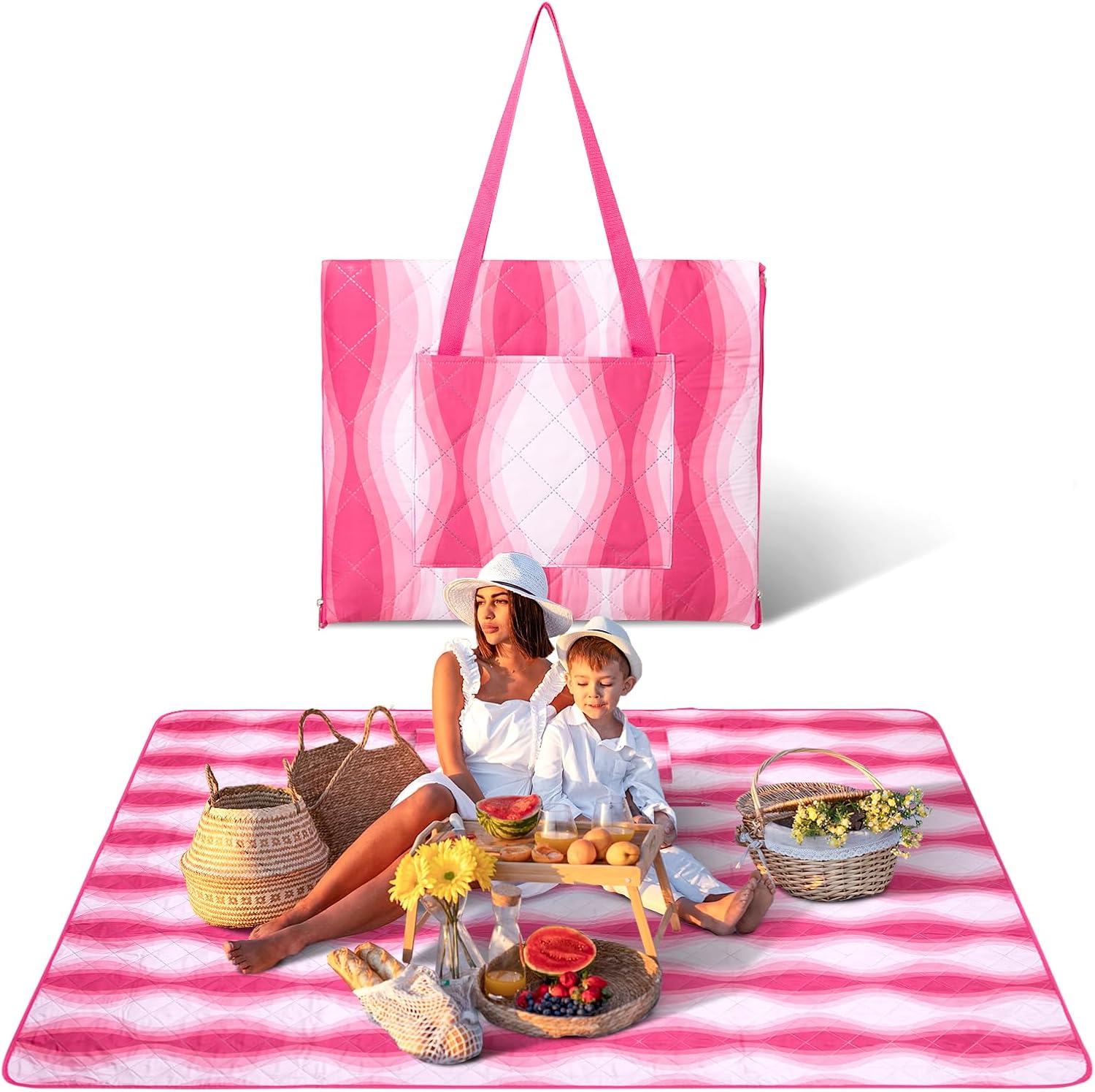 #WEJOY 3 in 1 Outdoor Picnic Blanket, Padded 5 Layers Beach Blanket, 80x60'', 4 Person, Easy to Fold, Waterproof for Lawn,Camping, Park (Pink)