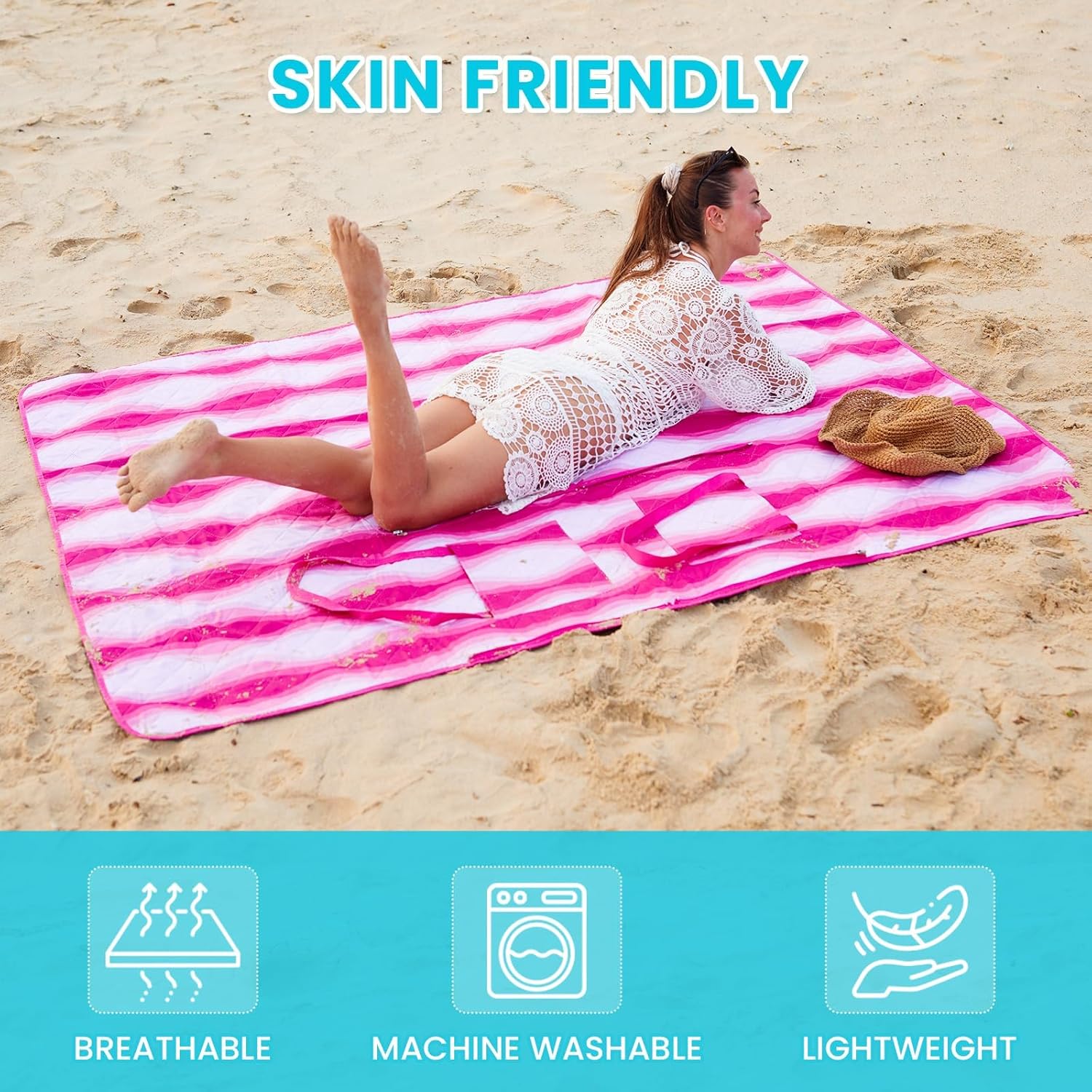 - 3-IN-1 DESIGN – Blanket, Bag & Storage More than just a picnic blanket!This durable beach blanket folds up into an easy to carry tote with carrying strap and extra large pocket to hold personal items—perfect for snacks, toys, wipes, or small essentials.