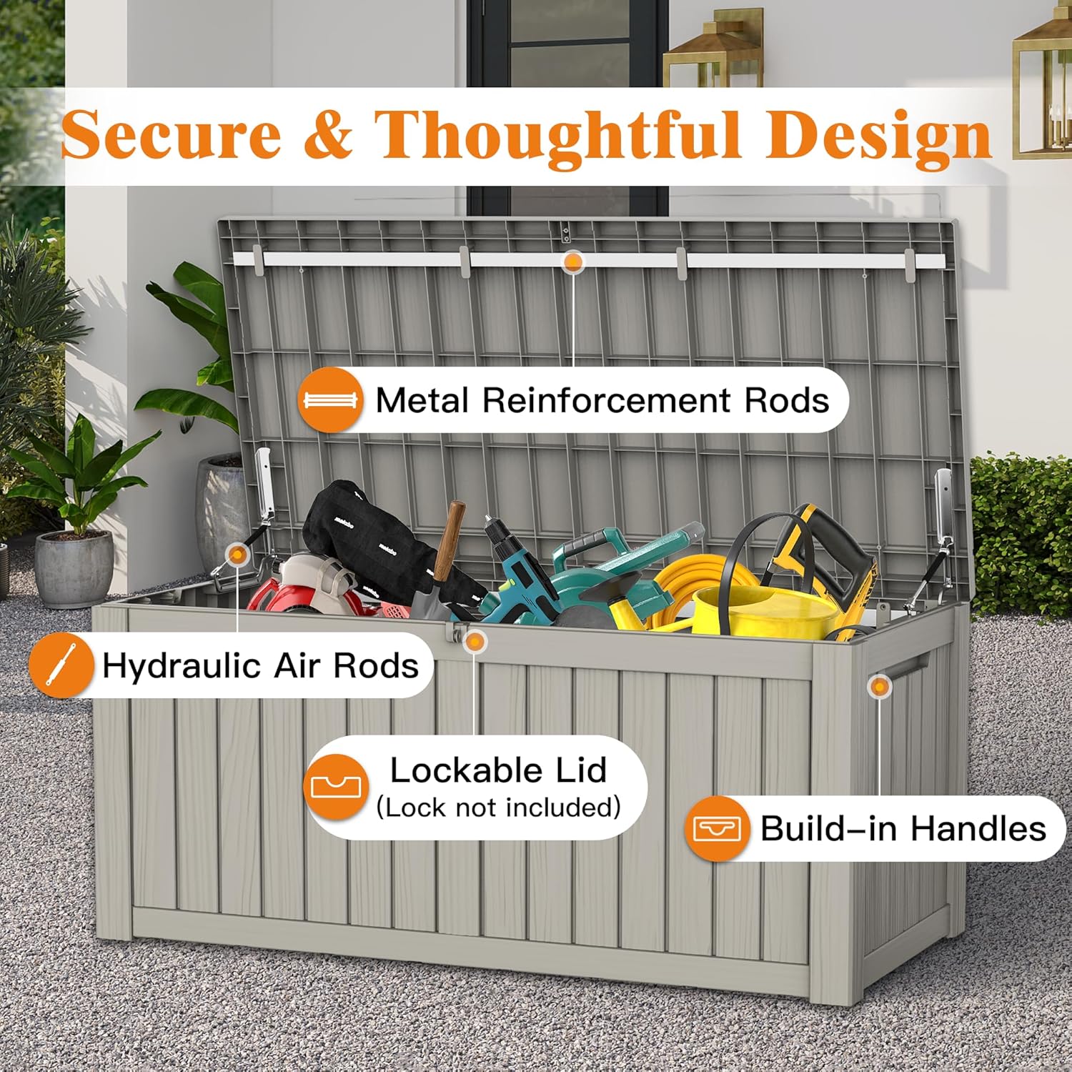 - Reinforced & Multi-Purpose Design: Built with a metal reinforcement rods and reinforced structure to resist deformation, this patio storage box supports up to 600 lbs and doubles as a bench or extra seating for your outdoor space