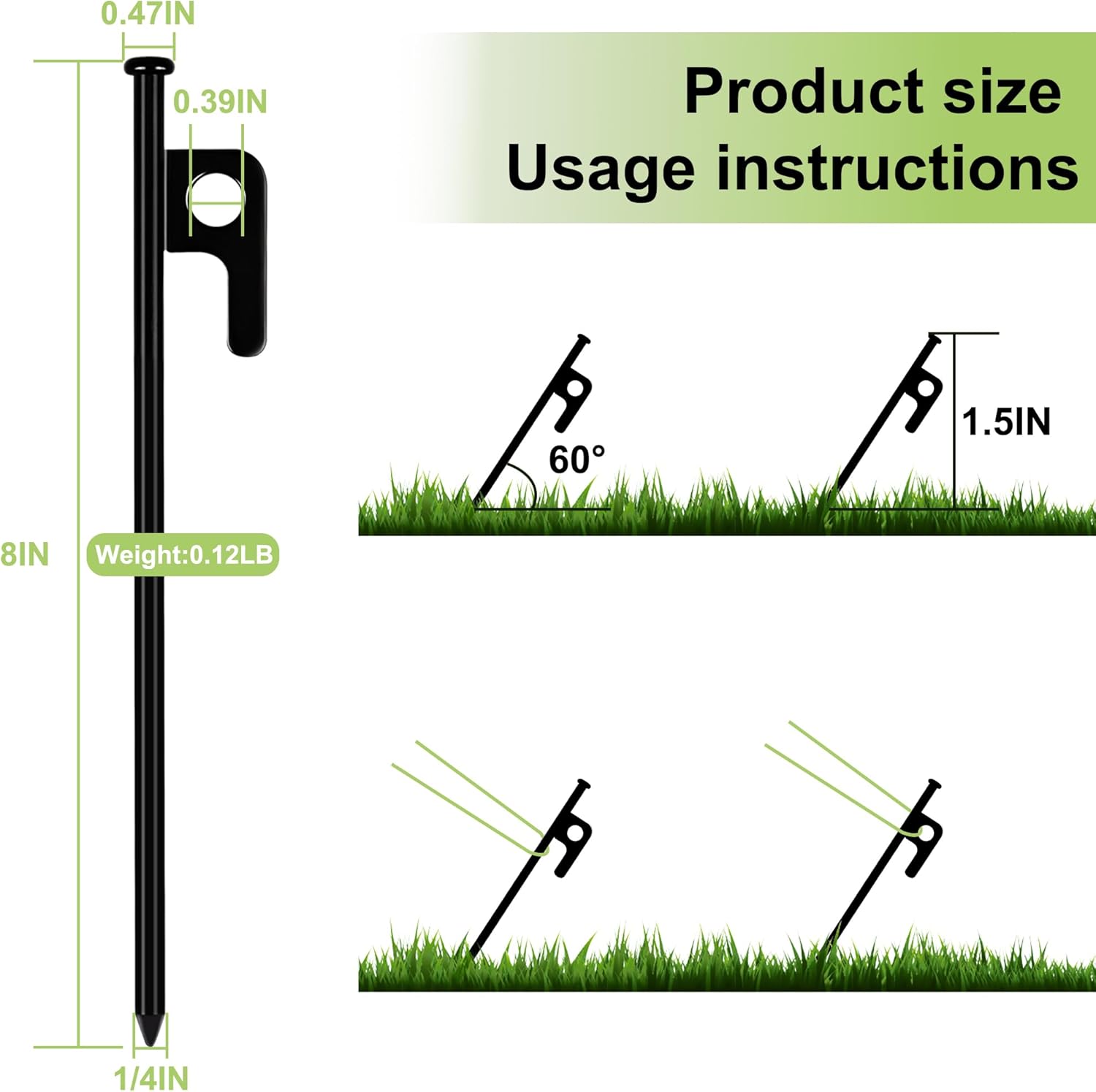 - ONE PEG MULTI-PURPOSE: A set includes 8 camping stakes for tents, awnings, greenhouses, Halloween/Christmas decorations, Christmas trees, trampolines, fence, garden decorations and other scenes