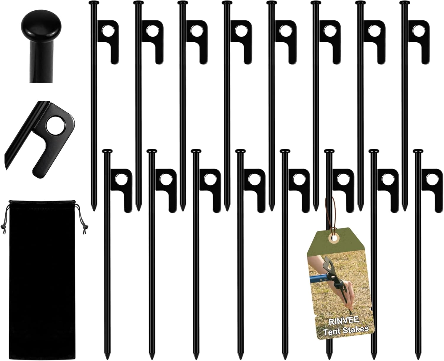 16 Pack Tent Stakes Heavy Duty Forged Steel Camping Stakes for Ground Outdoor Decorations Canopy