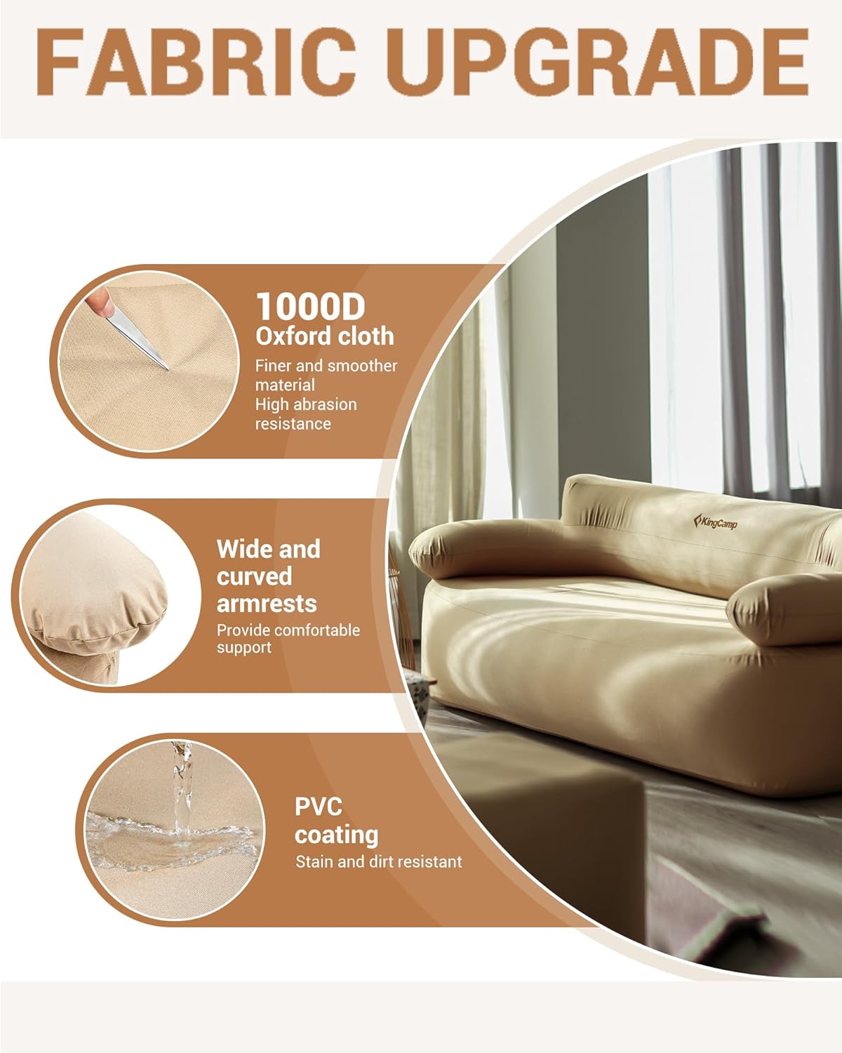 - Compact & Travel-Ready:The couch folds down small and fits into the included carry bag, while the electric pump is lightweight and USB-rechargeable – ideal for car camping or travel.