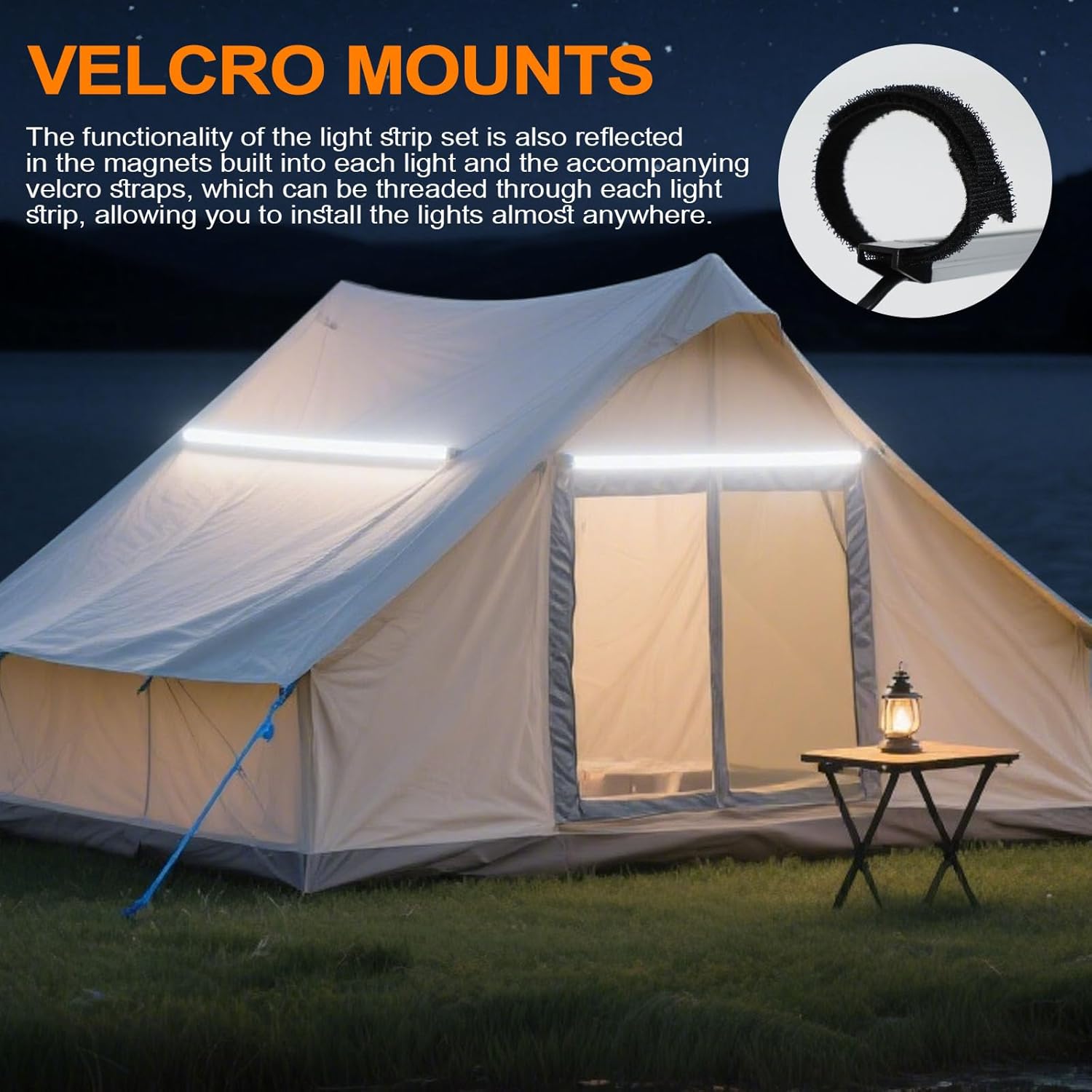 - 【EASY TO INSTALL】Each trailer lights has a built-in strong magnet that instantly attaches to metal frames. It also comes with eight thick Velcro straps that can be threaded through the light strip, allowing for secure installation on tents, awnings, and car roofs without the need for glue. Removal leaves no residue.