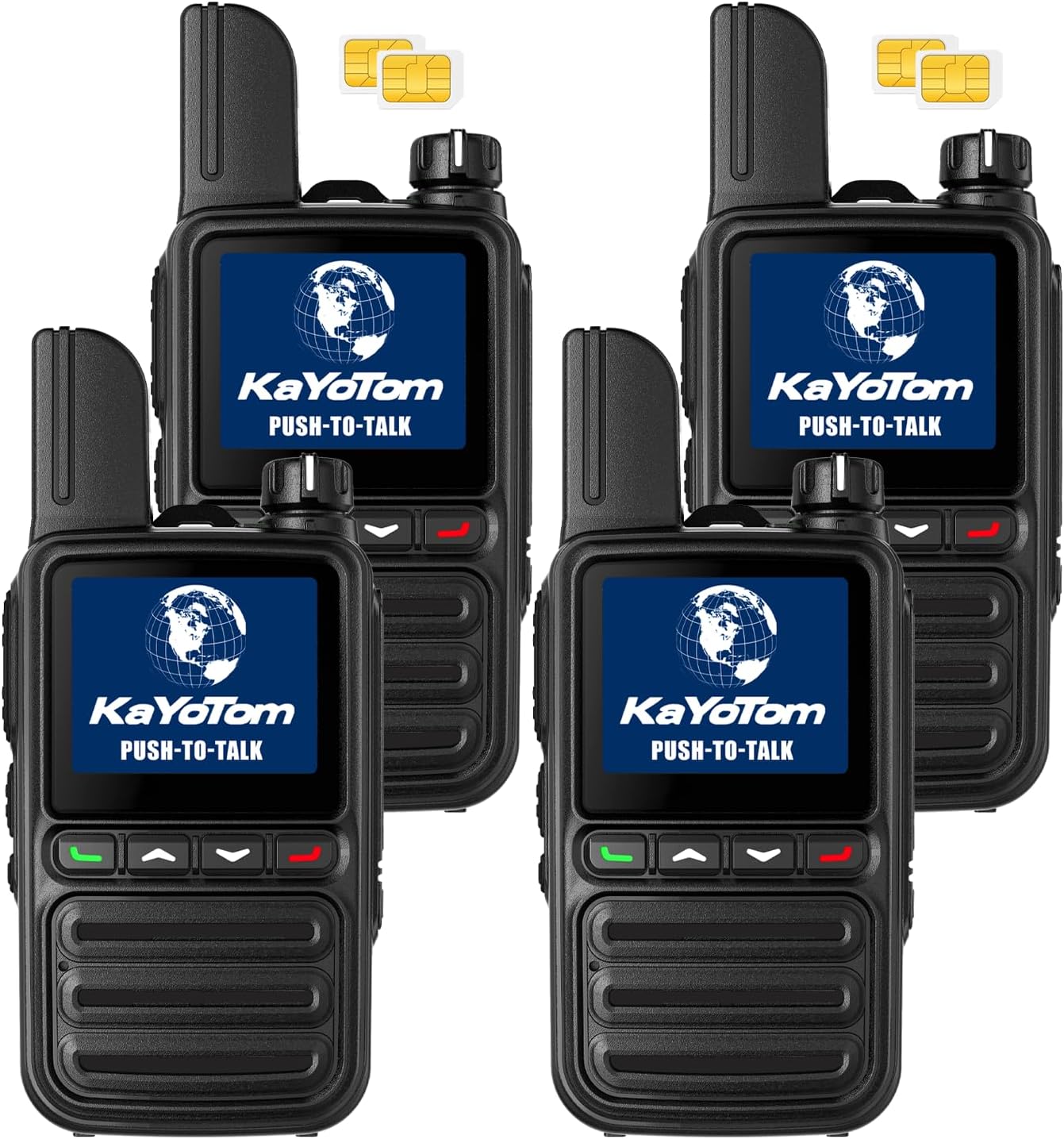 KAYOTOM Lifetime Free Unlimited Range Rapid Global Walkie Talkies PTT Push-to-Talk Over Cellular Nationwide 5000+ Miles POC 4G LTE Handheld Long Range Two Way Radio for Team Management (4Pack and SIM)