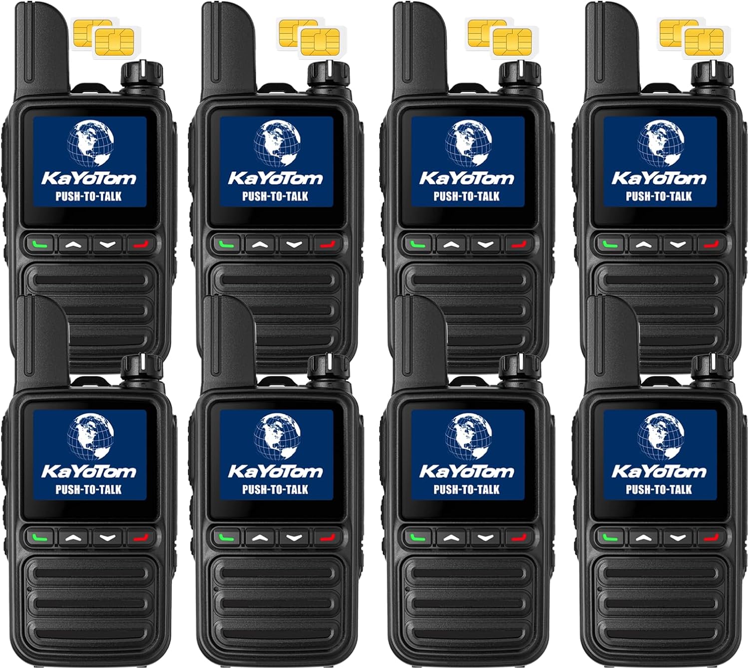 KAYOTOM Lifetime Free Global Walkie Talkies Unlimited Range PTT Push-to-Talk Over Cellular Nationwide 5000 Miles POC 4G Handheld Long Range Two Way Radio for Team Management (Black, 8-Pack)