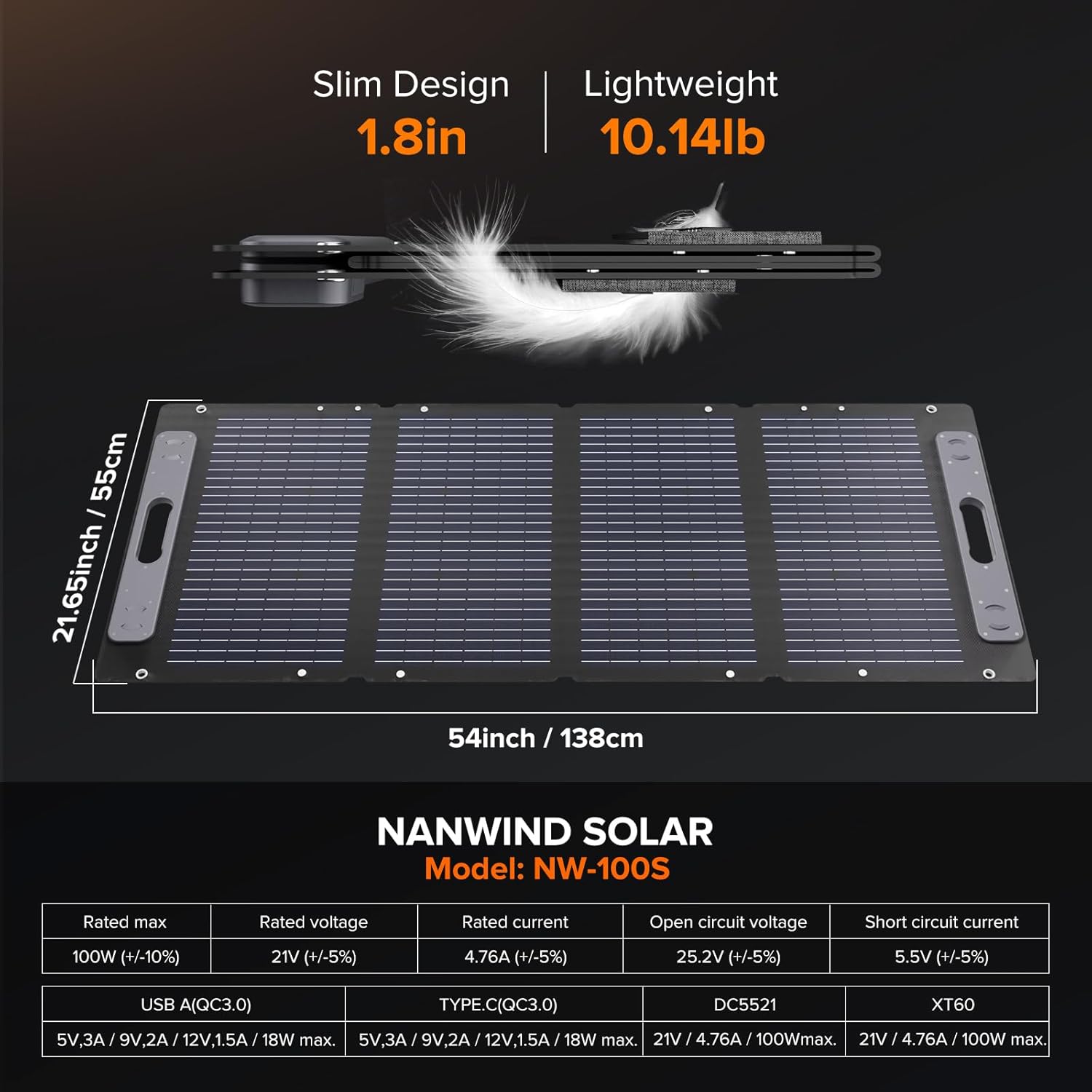 100W Portable Solar Panel for for Camping,RV,Off-Grid-23.5% Efficiency,Lightweight Foldable,USB-A,Type-C & XT60 Output,IP67 Waterproof,IEC Certified