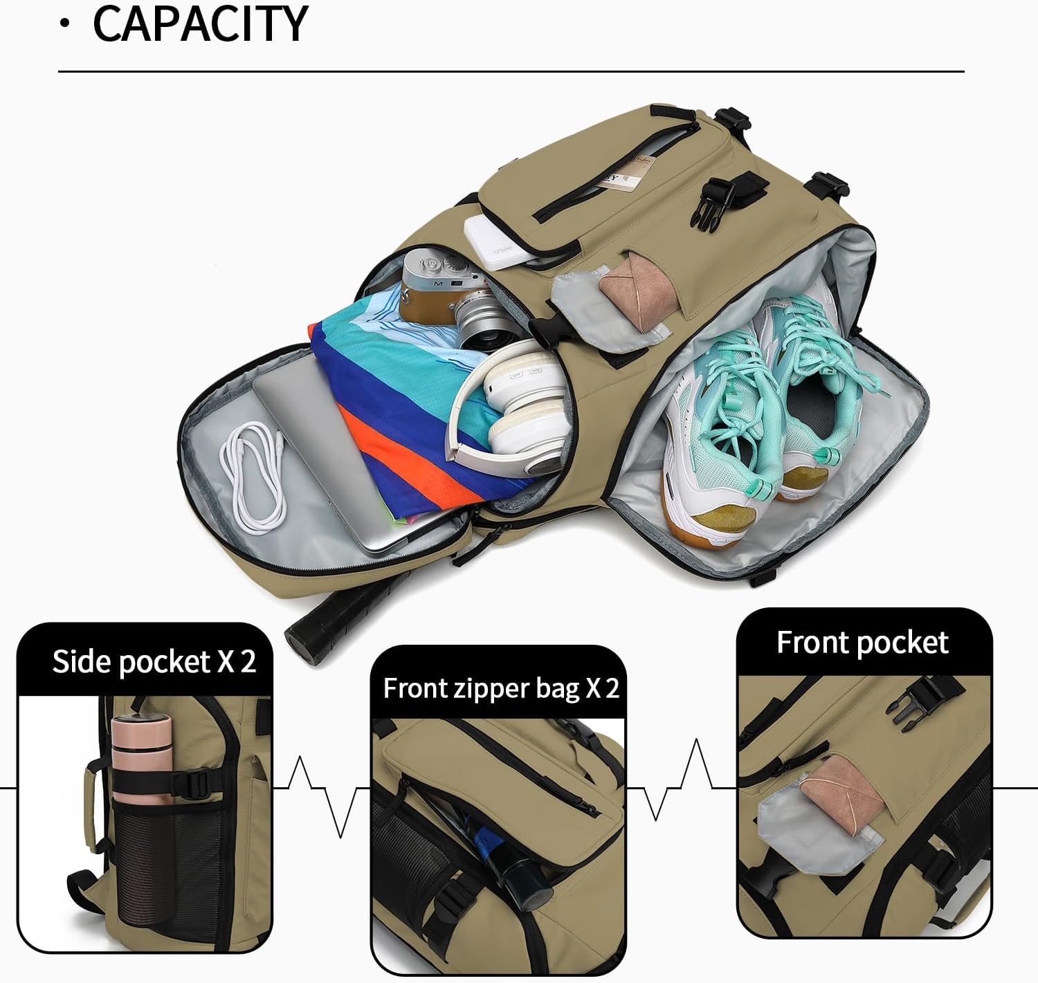 Kalesi Gym Duffle Tennis Bag Backpack 4-Way Waterproof with Shoes Compartment for travel Sport Hiking laptop (Wood color)
