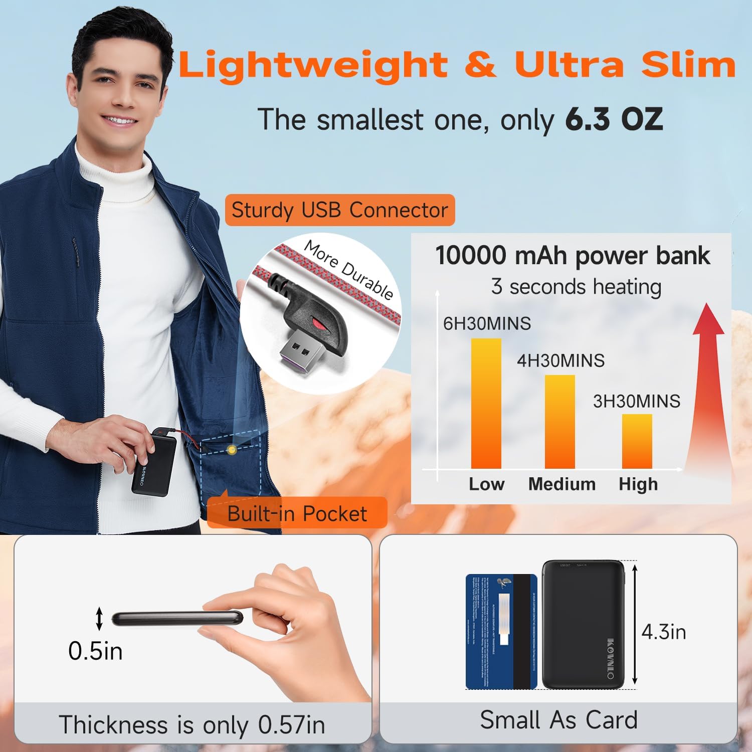 - [HIGH-CAPACITY 10,000mAh BATTERY PACK] :Comes with a certified 10,000mAh rechargeable battery pack with LED display. Lasts 3–6 hours depending on heat level, and includes a USB-C port to charge phones or other devices. Safety features include fire-resistant shell and temperature control protection, making it reliable for all-day use.