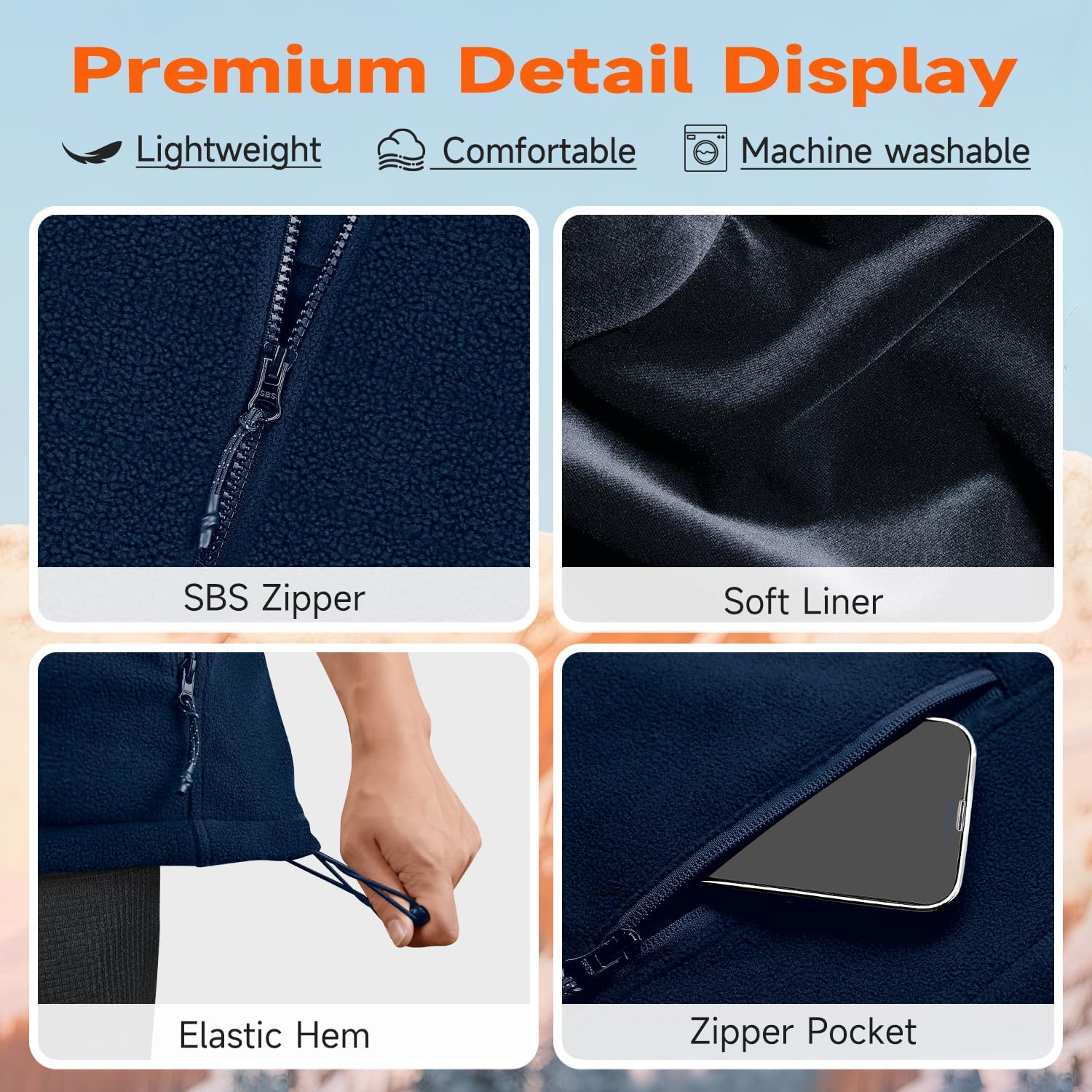 - [LIGHTWEIGHT FLEECE & FLEXIBLE FIT] :Crafted from soft fleece fabric for warmth and breathability without restricting movement. Equipped with a high collar, durable zipper closure, dual zippered pockets, and adjustable hem for custom comfort. Machine washable with included laundry bag—ideal for daily wear in outdoor or indoor cold conditions.