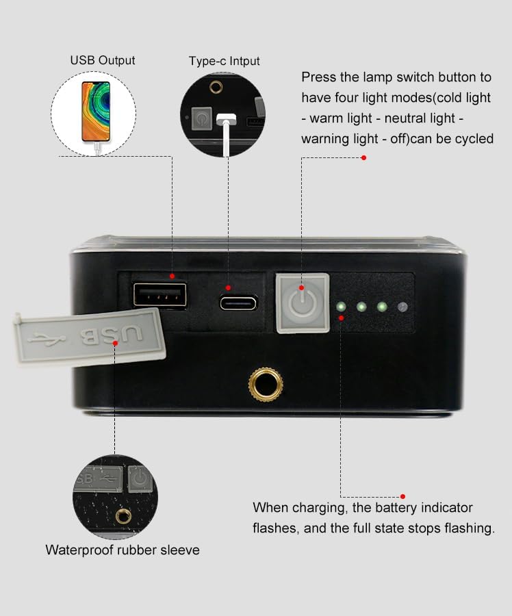- Rechargeable and durable: charging lantern, C-shaped charging cable. USB input port and 4000 mAh battery. Charging for 5-6 hours, lighting in strong light mode for up to 6-8 hours, avoiding battery replacement. As an emergency light during power outages, hurricanes, earthquakes, storms, indoor and outdoor use