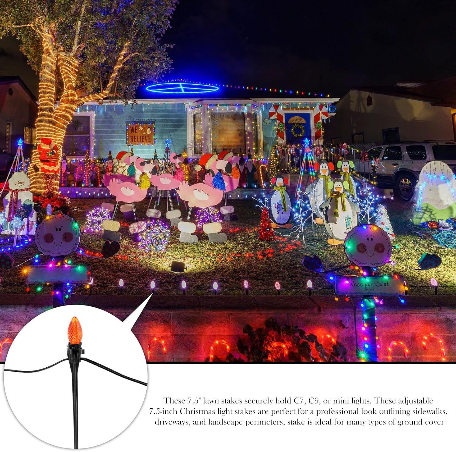- Suitable type: these Christmas light lawn stakes can accommodate either LED or incandescent miniature and C-series lights, and they can support these bulbs well, you can buy them at ease