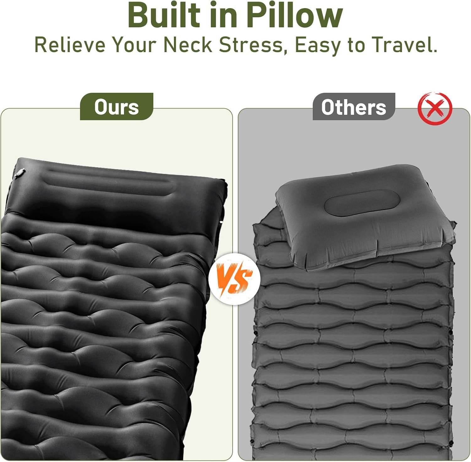 - 【Silent Comfort】Made with 200T pongee for a smooth, quiet feel, plus TPU lining for enhanced durability. This sleeping mat won’t squeak like nylon when you turn and twist. Built for peaceful sleep-Ideal for camping, car trips, or backpacking, where restful sleep matters most.