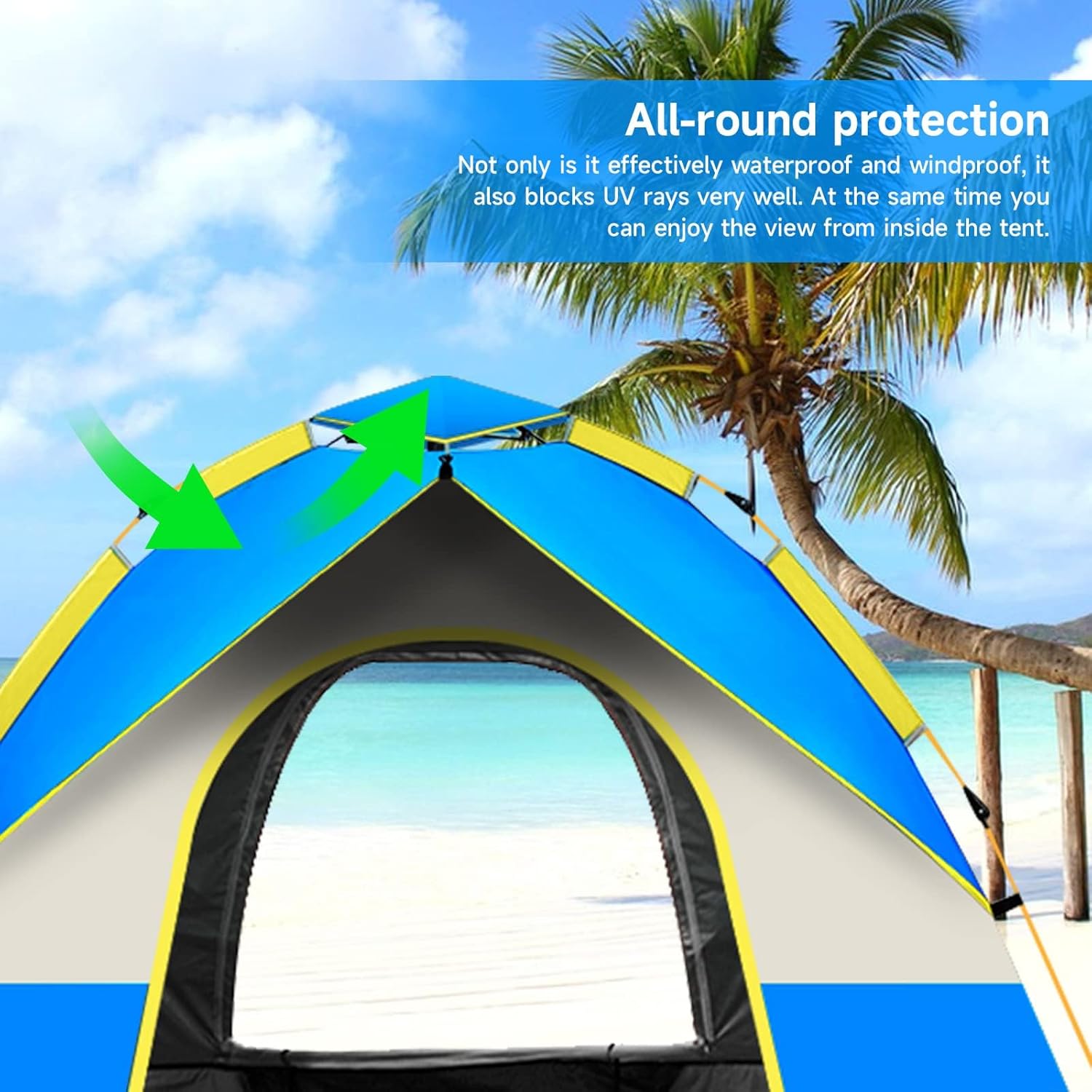 - 【Simple setup and quick disassembly】This tent is very easy to install and disassemble. Setting up this camping tent manually is easy and fun, it only takes about 1 minute to assemble. Take down is also easy and fast.