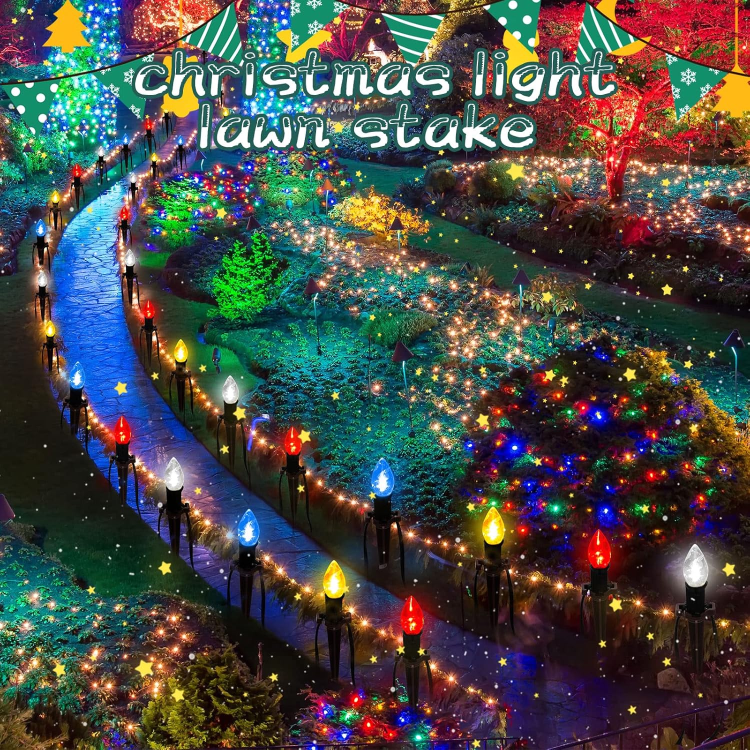 - Suitable type: these Christmas light lawn stakes can accommodate either LED or incandescent miniature and C-series lights, and they can support these bulbs well, you can buy them at ease