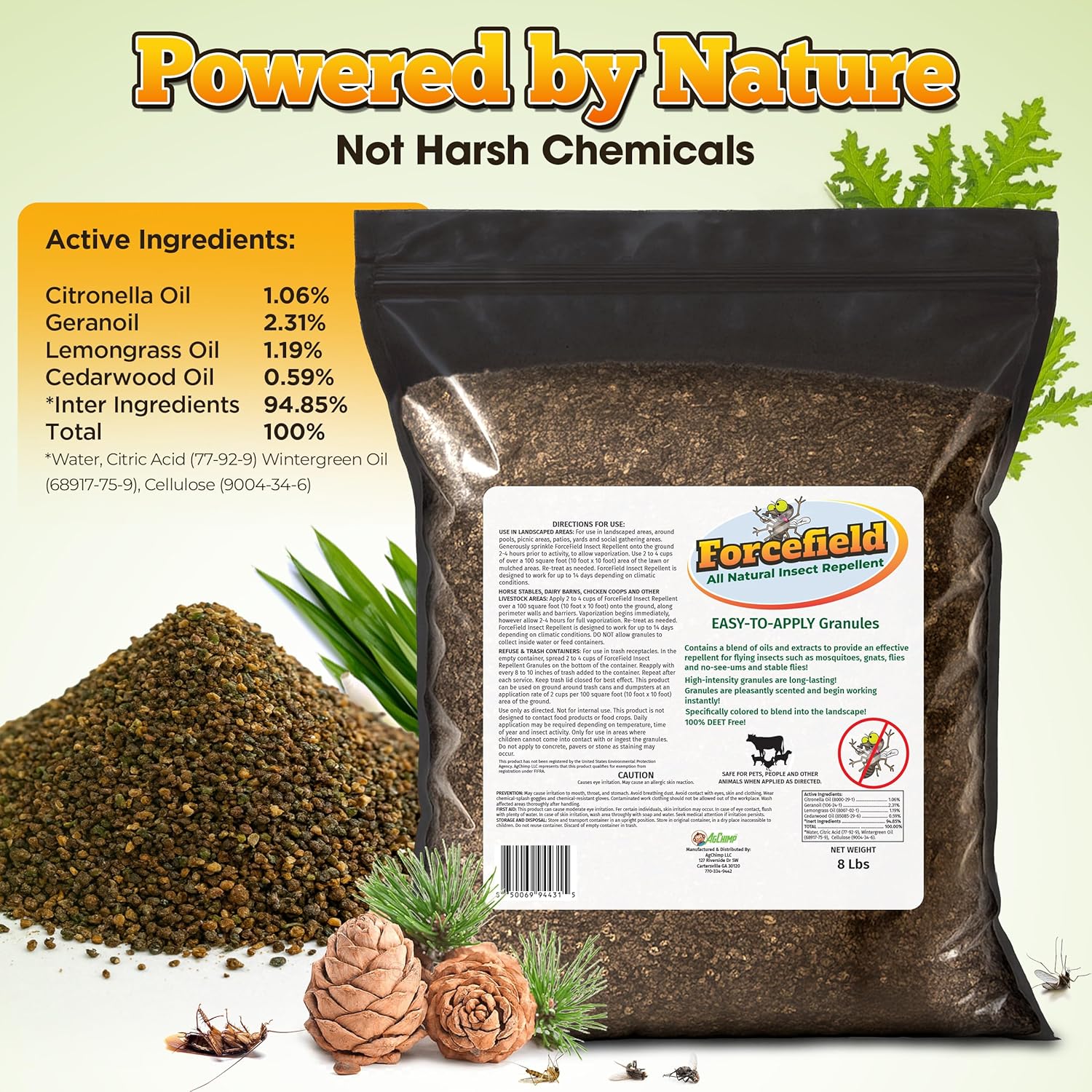 ForceField Natural Flea, Tick, Mosquito Yard Treatment - Repellent Granules for Backyard Mosquito Control | Pet Safe, DEET-Free Outdoor Control | Long-Lasting Barrier for Lawns, Patios, & Barns 8 LB