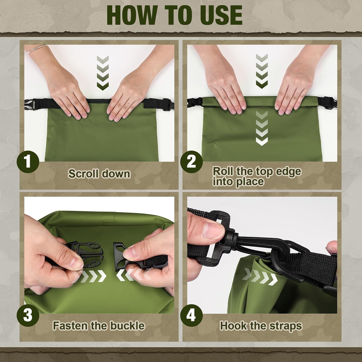 - Robust Material Composition: crafted using resilient PVC, our waterproof bag assures you a lasting usage even when applied in rugged camp environments; Accompanied by sturdy nylon ropes and completed in black and green, which seamlessly blends durability with style