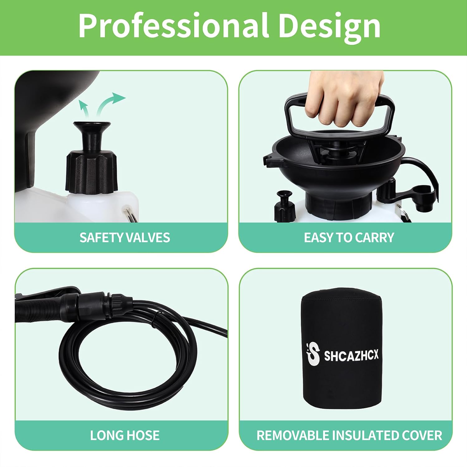 - [Usage Tip] - Use only for water spraying. Do not fill above the maximum water level line or add pesticides, disinfectants, or other chemicals. The built-in safety valve will automatically release excess pressure, and for long-term storage, always release internal pressure and keep the portable shower out of direct sunlight.