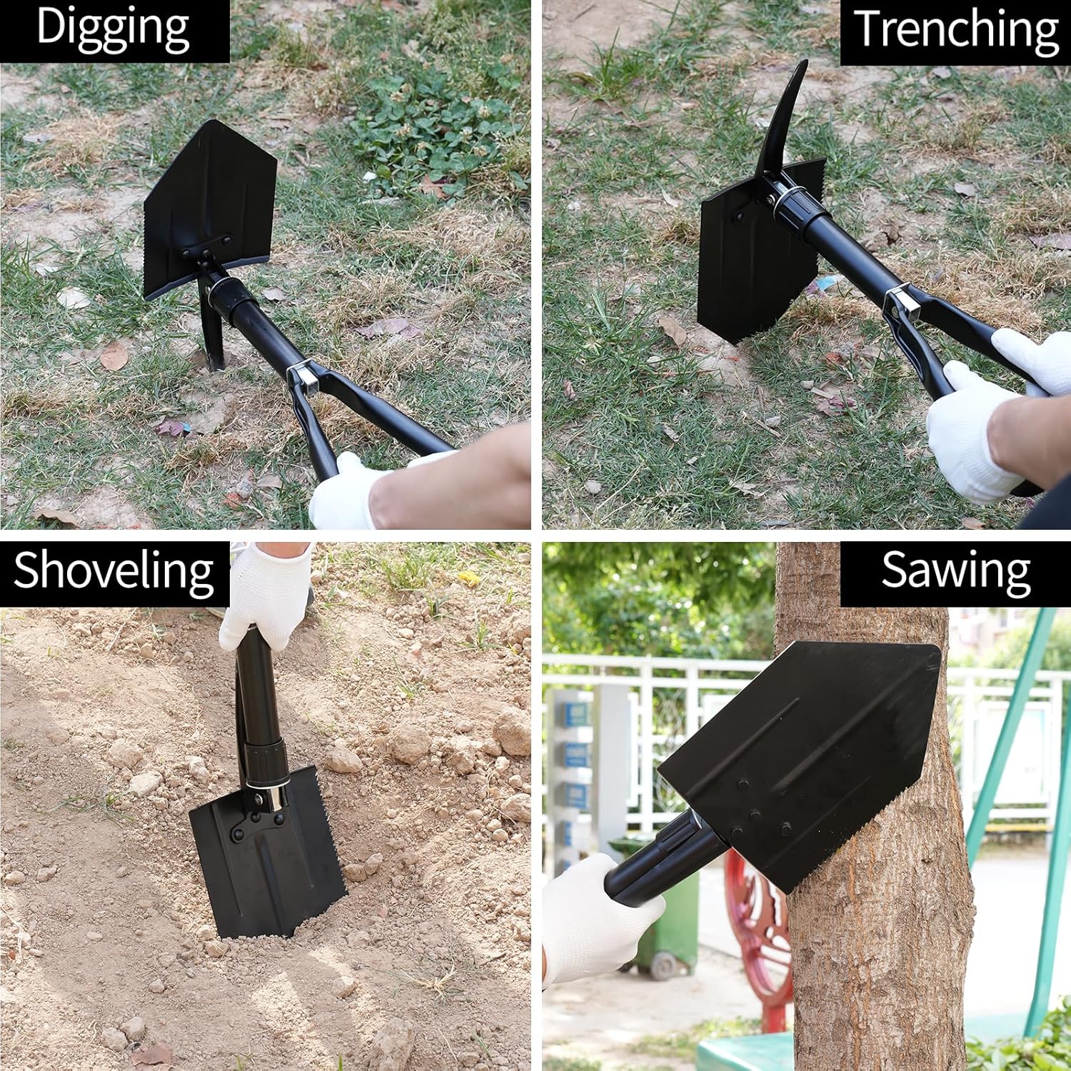 - 【TACKLE TOUGH TASKS】 The Shovel's serrated edge cuts roots and rope, while the sturdy blade handles digging and snow removal. The Multi-Tool's Pliers grip and twist, the Knife cuts precisely, and various tools handle repairs, gear adjustments, and everyday needs in the wild or at home