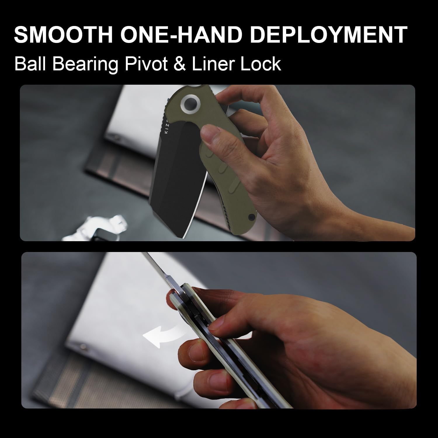 - Perfect for Large Hands: With a 3.9" blade and 9.3" overall length, the Kizer C01C XL Sheepdog pocket knife for men women offers a secure, ergonomic grip ideal for larger hands or gloved use; Its well-balanced build enhances control and minimizes fatigue during extended cutting tasks