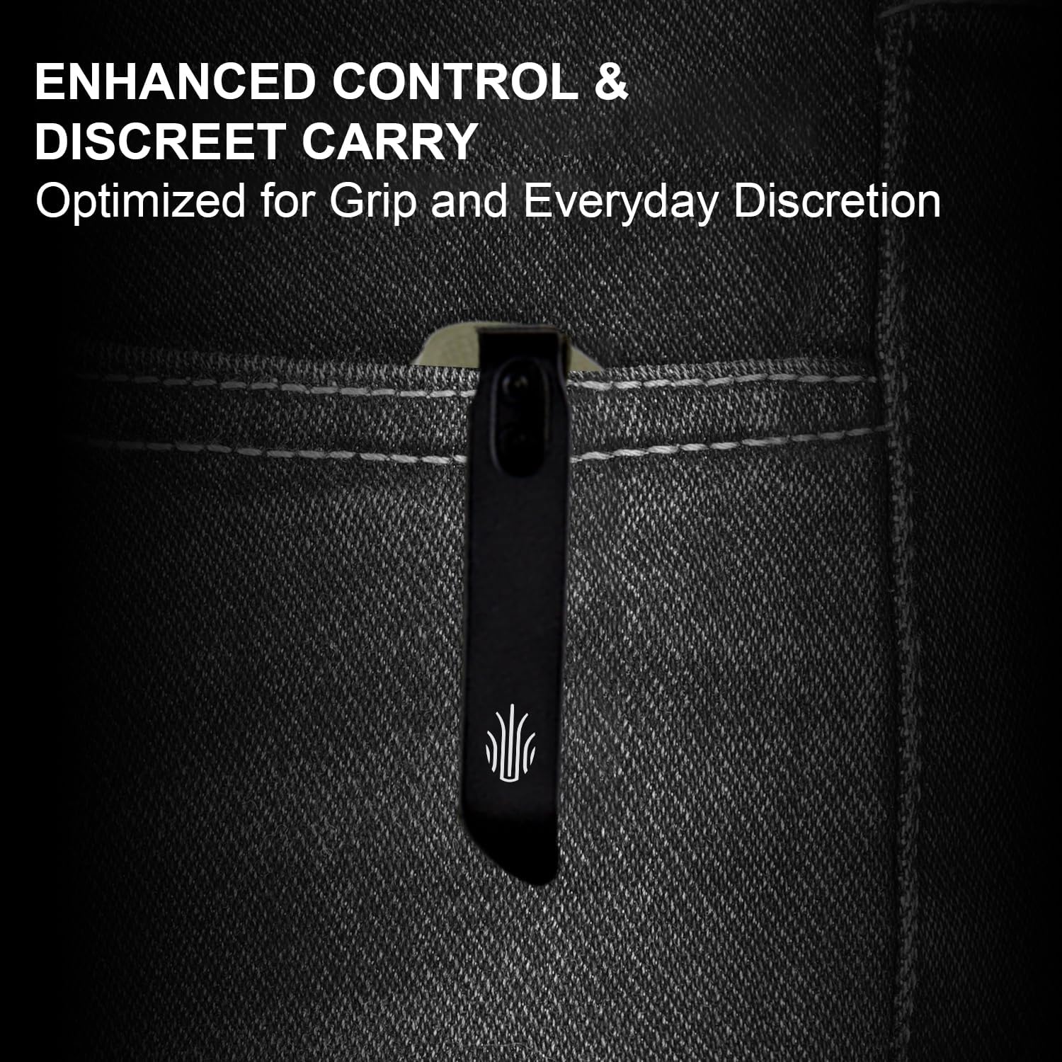 - Enhanced Control, Concealed Carry: Dual-sided grip grooves enhance stability, maintaining a secure hold even with sweaty palms, while reducing weight for improved balance and control; The deep pocket clip of the survival pocket knife provides a low-profile, secure carry—perfect for daily concealed use