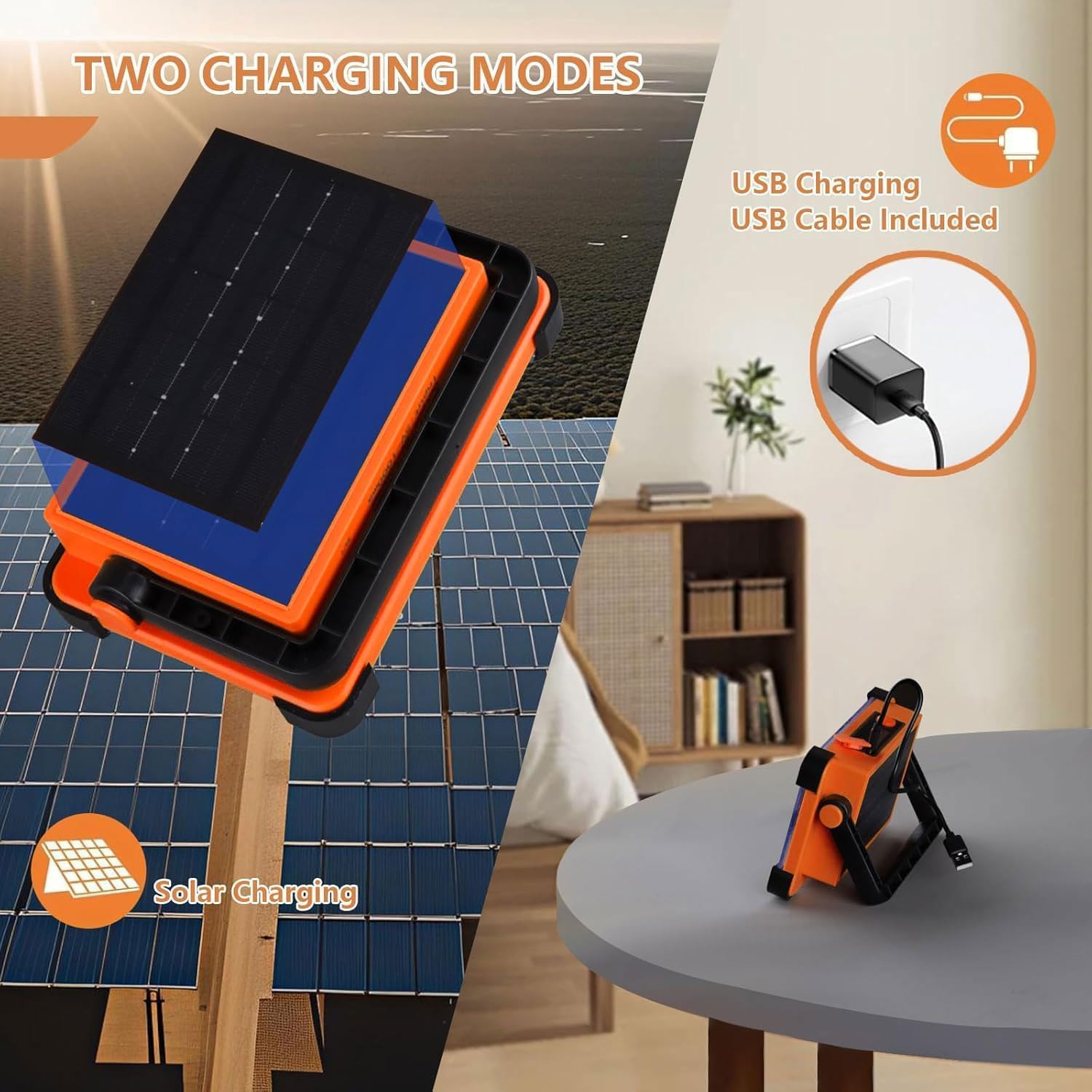 - 3 Modes & USB Power Output - This emergency work light can be used as a rechargeable treasure to charge other electronic devices, it also provides 22% solar energy conversion emergency charging function. In addition conventional lighting to meet the use of different scenes
