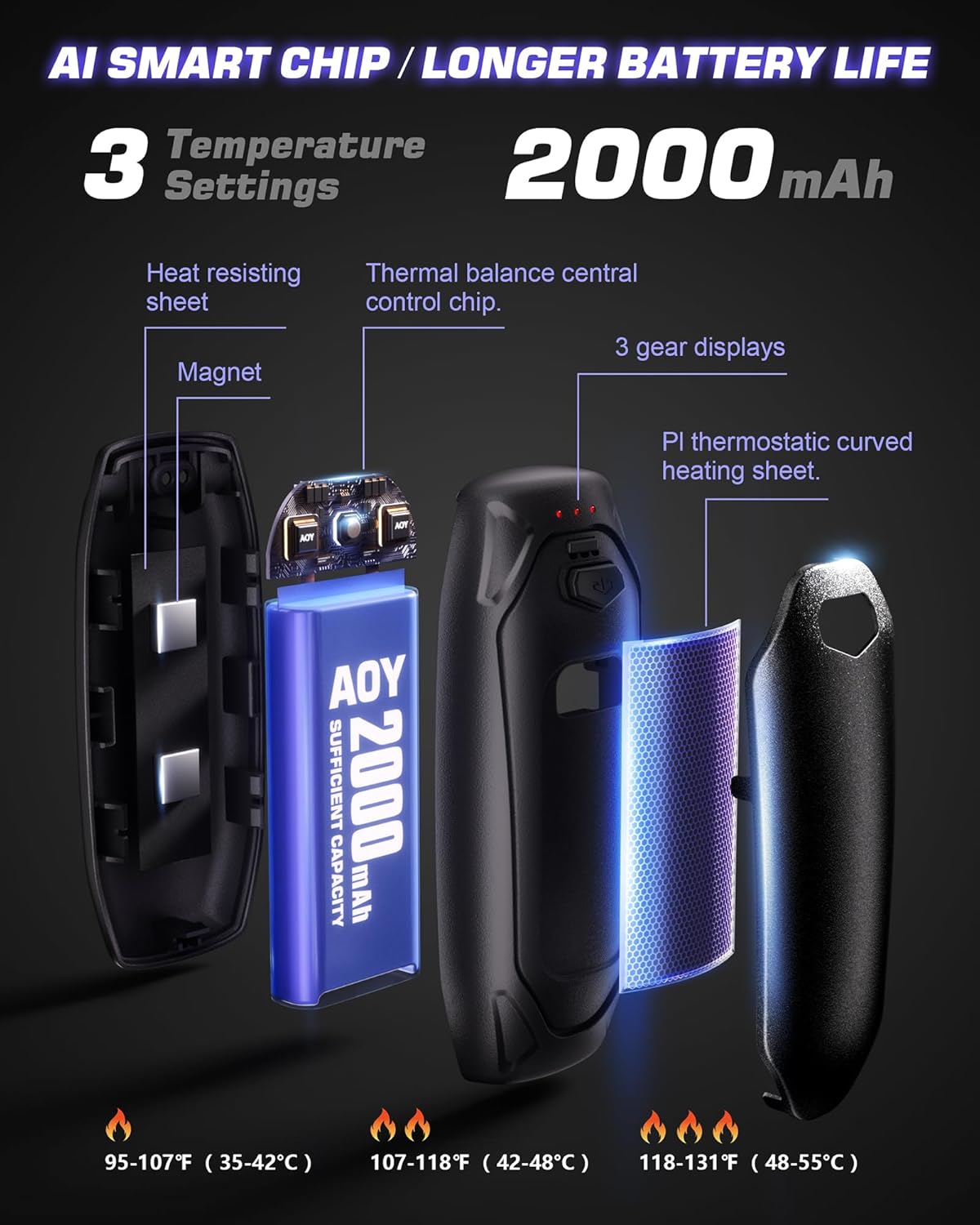 - 1s Instant Heat & 3 Heat Settings: Experience warmth in just 1 second with these 2-pack rechargeable hand warmer! Choose from 1st level (35℃/95℉-42℃/107.6℉), 2nd level (42℃/107.6℉-48℃/118.4℉), and 3rd level (48℃/118.4℉-55℃/131℉) banish the chill or soothe sore hands,keeping your hands cozy and comfortable.