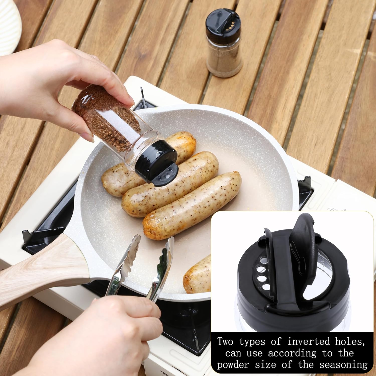 - ✔️ 【11-Piece Complete Kit】 3 large & 3 small powder bottles (dual-opening lids) + 3 leakproof liquid bottles (twist-seal spouts) + Portable funnel + EVA hard shell case. Perfect for salt, pepper, oil, vinegar, and all seasonings!