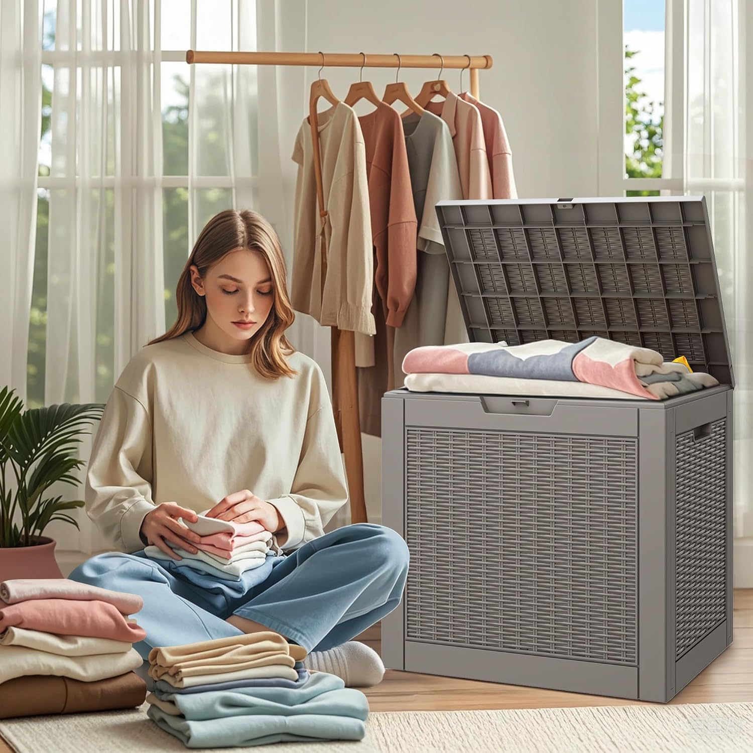 - Deck Boxes Outdoor Waterproof: Designed as a waterproof storage solution, this deck box protects your belongings from moisture and ensures they stay dry even during heavy rain. The lockable lid adds an extra layer of security, keeping your valuables safe from theft or damage.