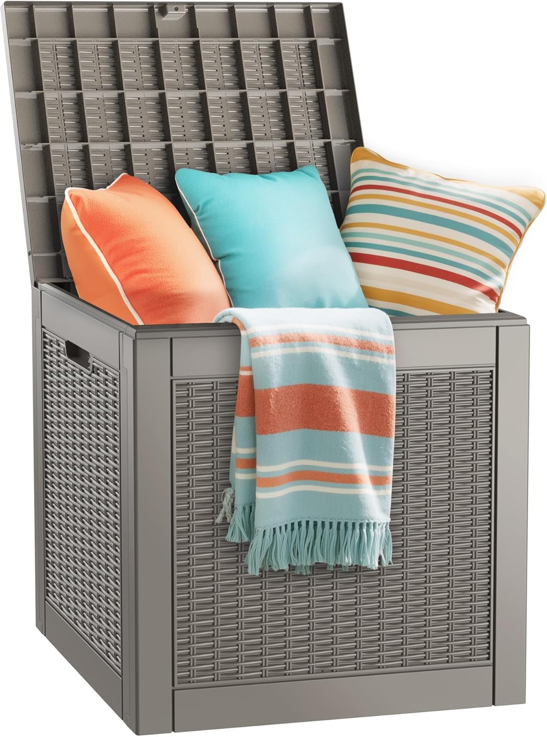 - Stylish design: Featuring a modern pattern design, this all-weather resin deck box adds a touch of elegance to your patio, garden, porch, or poolside. It serves as both a practical storage solution and a beautiful decorative piece.