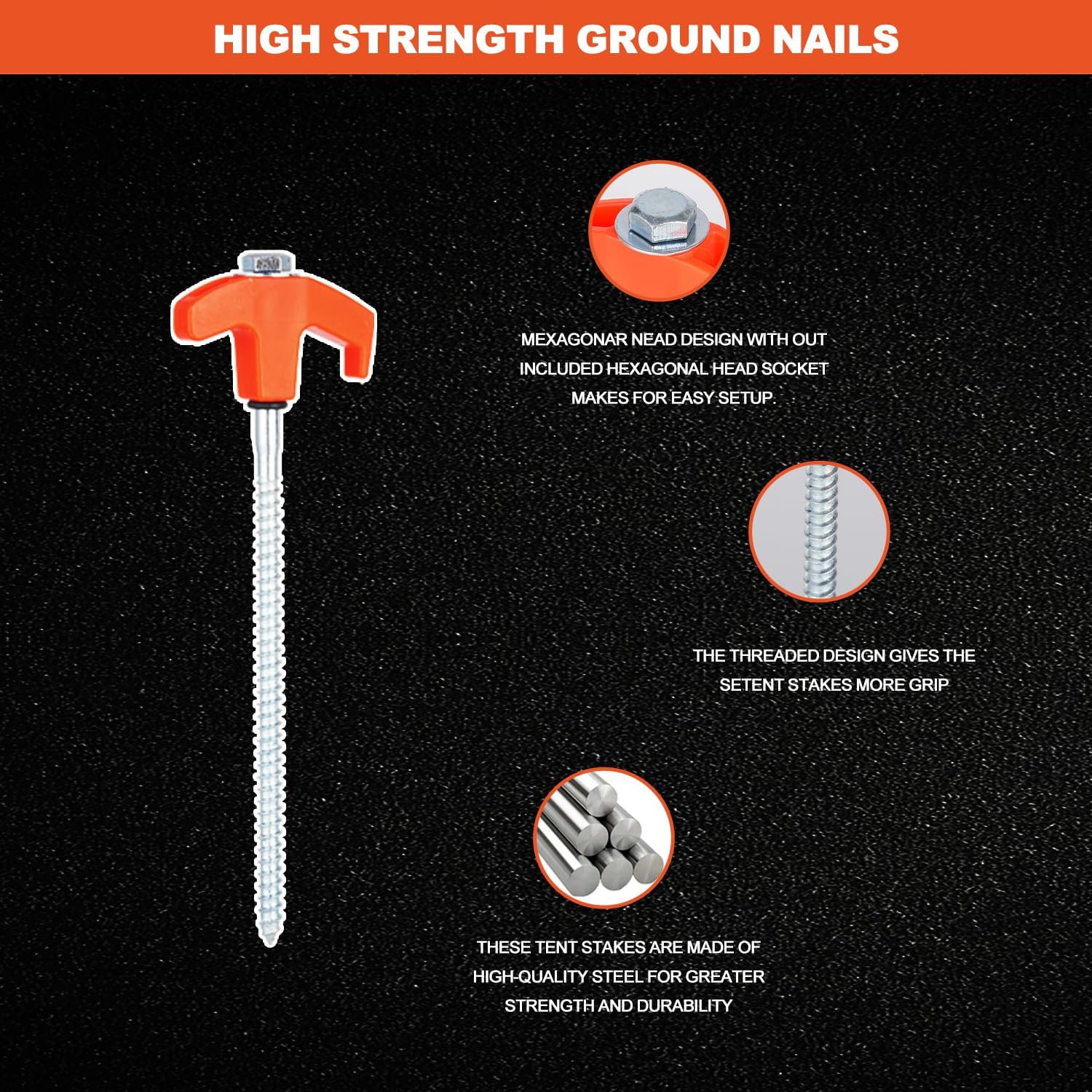 - Easy to install:Our tent stakes with the help of a cordless drill or impact driver or dismantle, these easy-to-use stakes will secure your these stakes will provide you with a reliable anchor point making them a versatile and essential addition to your camping.