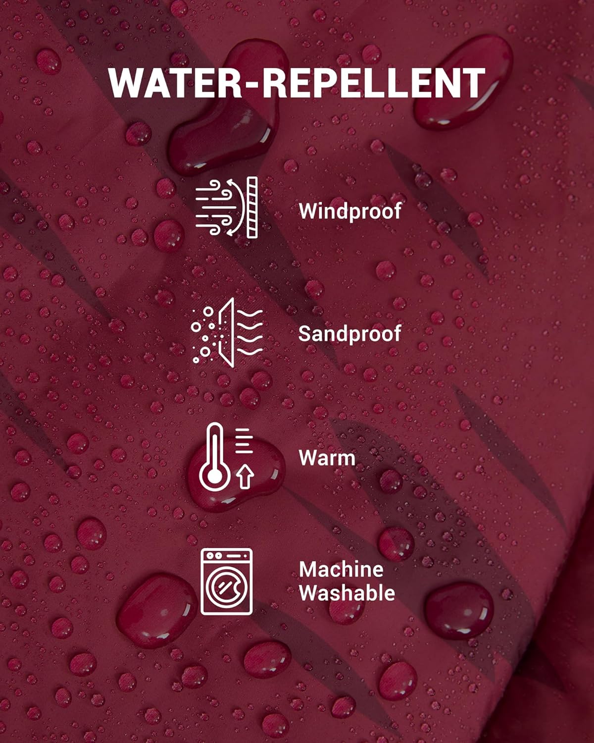 - WATER-REPELLENT & BUILT FOR THE OUTDOORS: Made from durable 20D polyester fabric with a DWR finish and reinforced contour stitching, this packable camping blanket offers dependable resistance against wind, light rain, and everyday wear. Whether you're watching a football game in drizzly weather or relaxing at an outdoor concert, it keeps you comfortable—so you can enjoy the moment without worrying about the occasional splash.