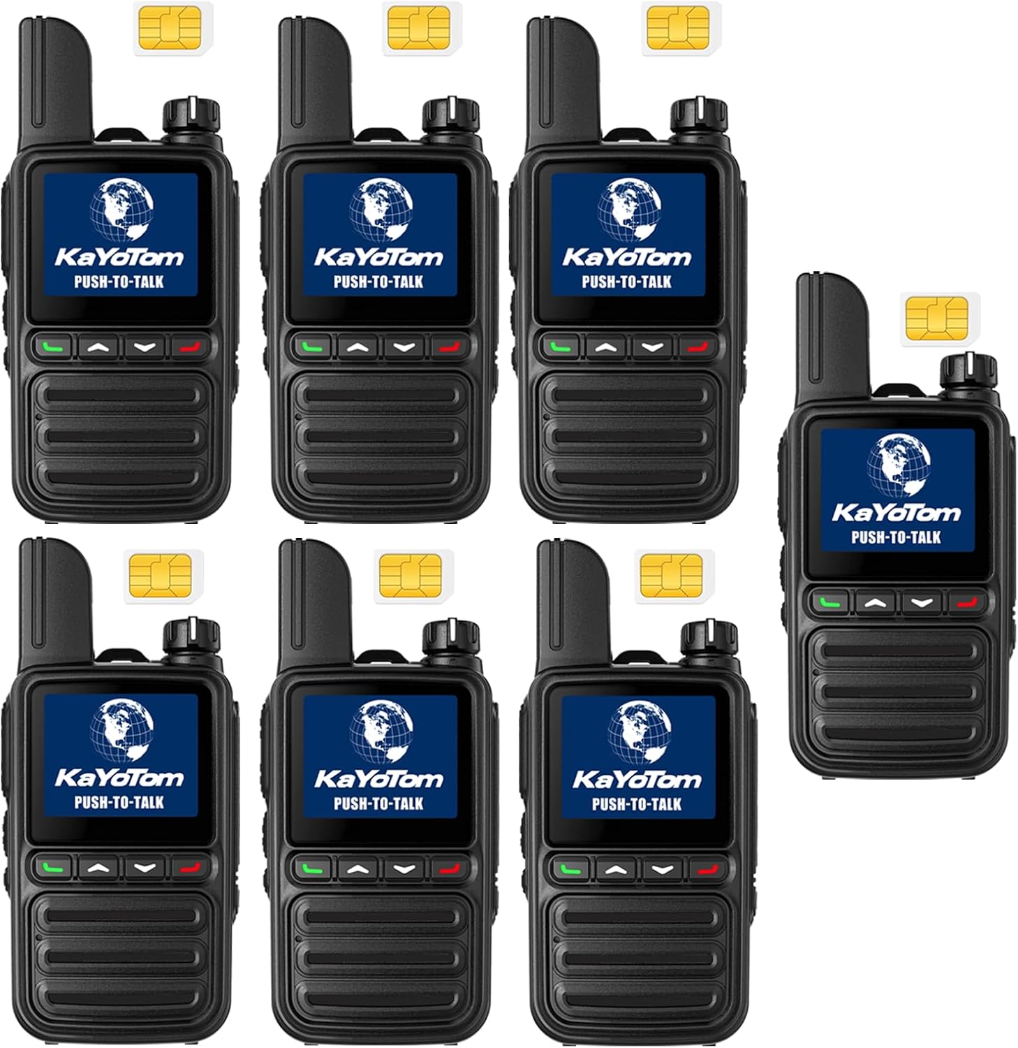 KAYOTOM Lifetime Free Global Walkie Talkies Unlimited Range PTT Push-to-Talk Over Cellular Nationwide POC 4G Handheld Long Range Two Way Radio for Team Management (Black, 7-Pack)