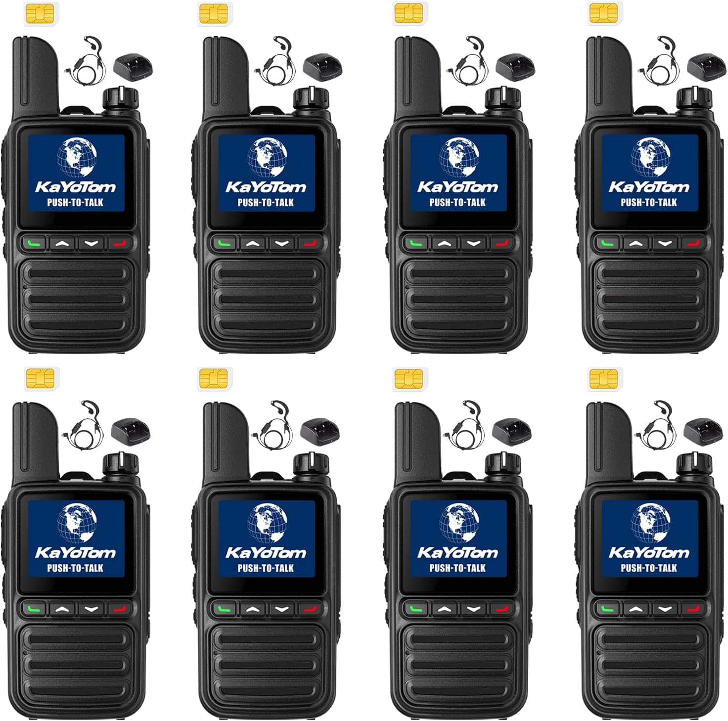 KAYOTOM Global Walkie Talkies Unlimited Range PTT Push-to-Talk Over Cellular Nationwide 5000 Miles POC 4G Handheld Long Range Two Way Radio for Team (with Charging Dock & Earphones, 8-Packs)